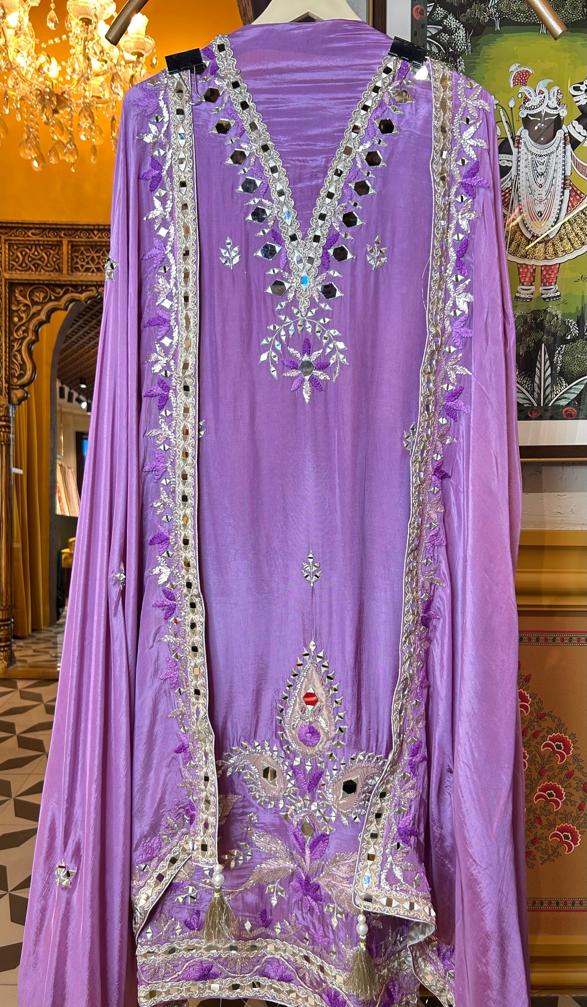 A sheer canvas of silk organza, delicately embroidered with resplendent threadwork and real mirror embellishments, adding sparkle to every glance.
