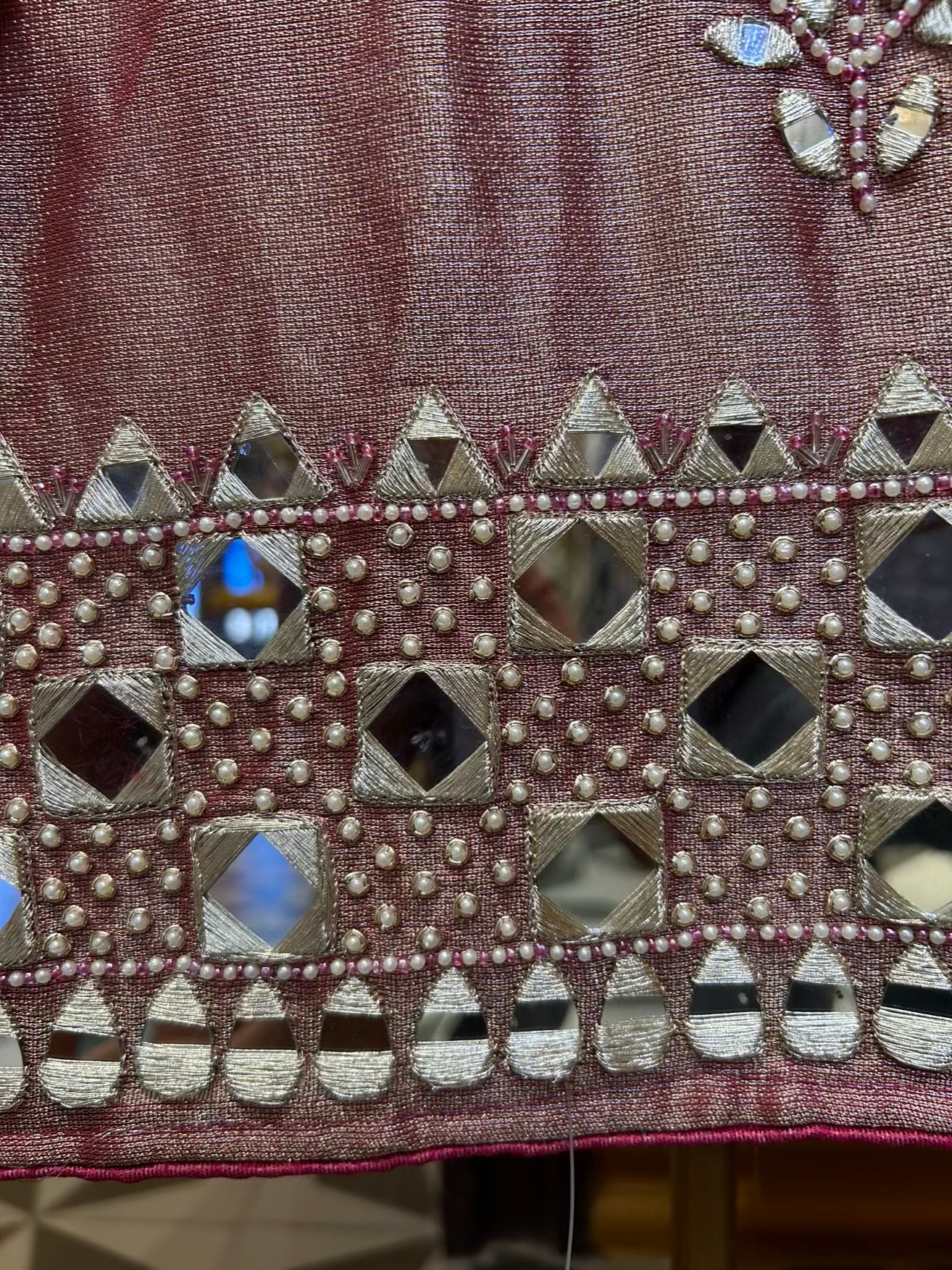 • Shimmer Organza Dupatta (2.25 mtrs) – Accented with real mirror work, adding charm to every drape.