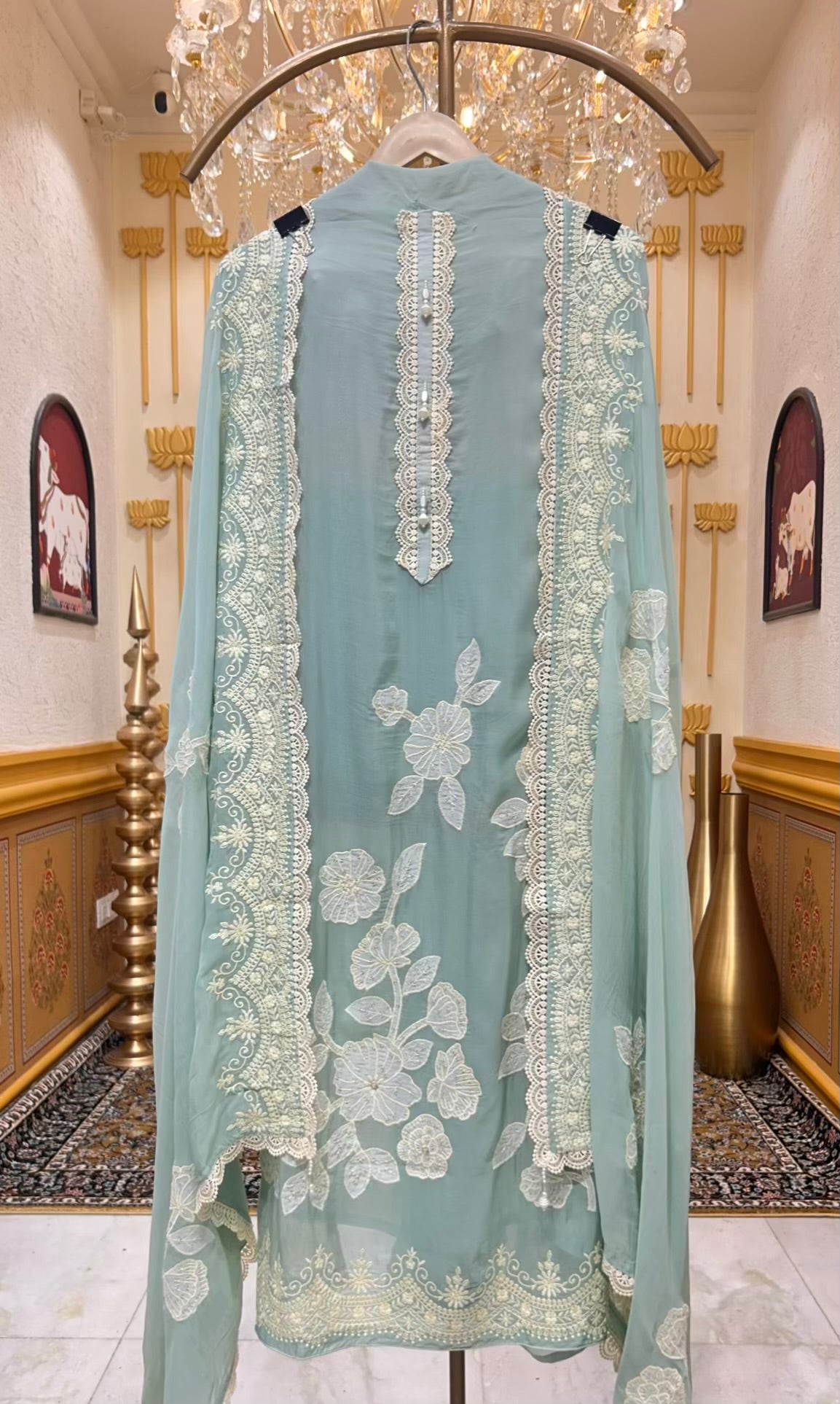 • Organza Dupatta (2.25 mtrs) – Light and flowing, highlighted with a delicate four-side lace border.