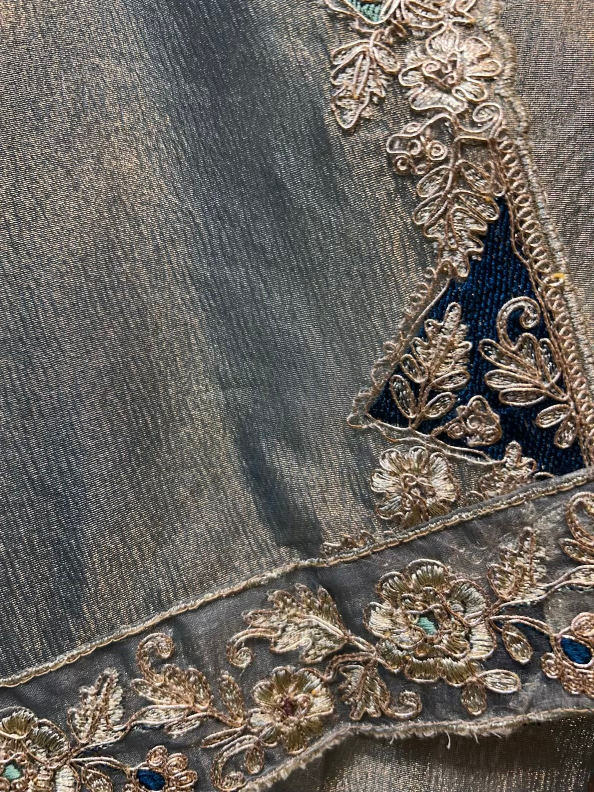 • Tissue Organza Suit (2.5 mtrs) – Adorned with elegant shimmer dori work for a subtle, radiant finish.