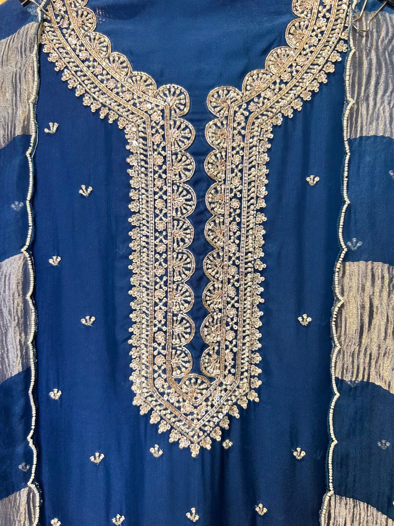 - Organza Suit (2.5 mtrs) – Beautifully enhanced with intricate handwork for timeless appeal.