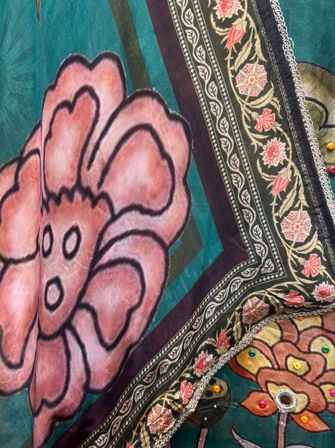 • Digital Printed Silk Organza Dupatta (2.25 mtrs) – Lightweight and graceful, designed to mirror the print and tone of the suit.