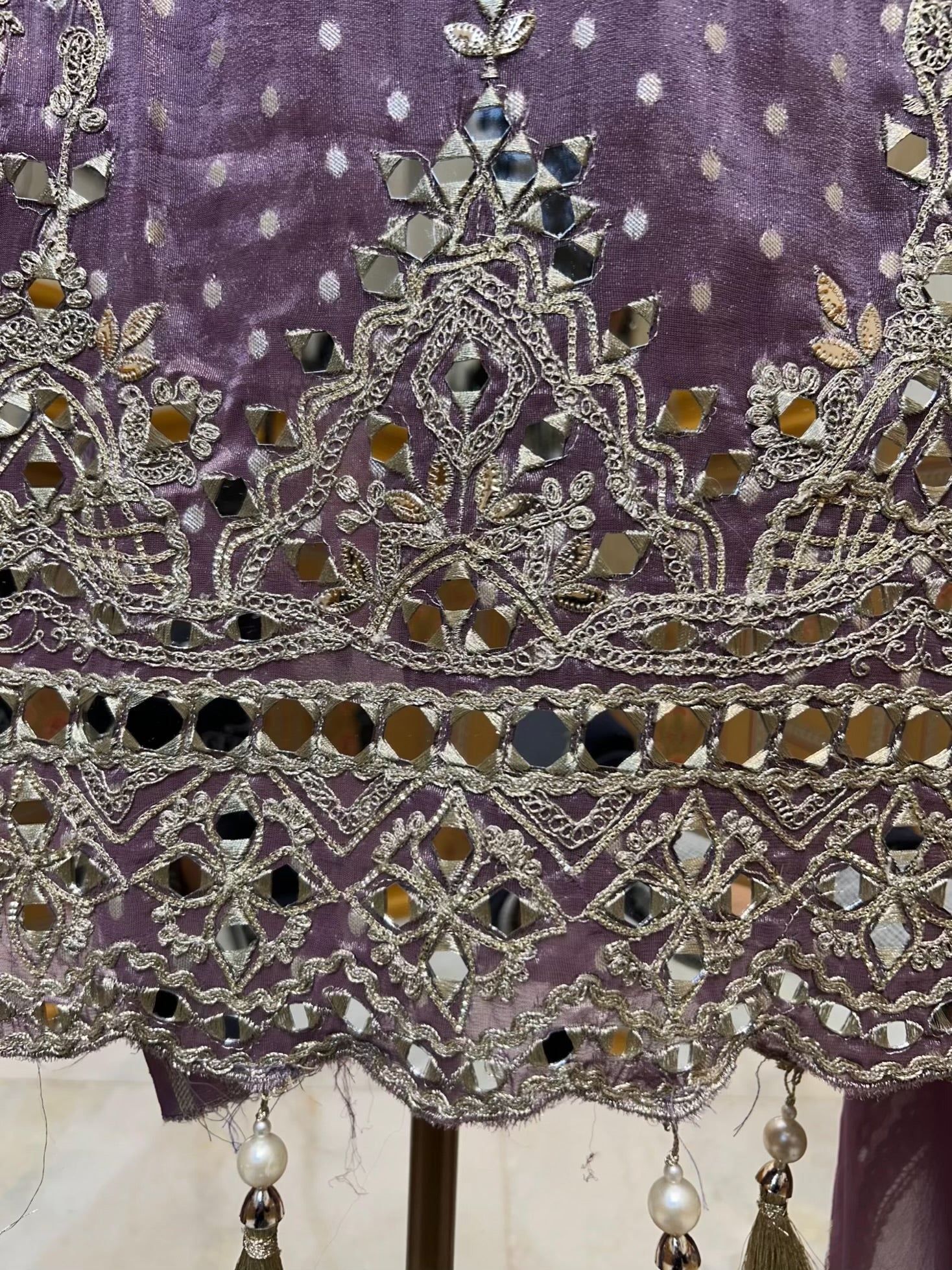 • Organza Dupatta (2.25 mtrs) – Finished with four-side mirror work borders for a cohesive, polished finish.