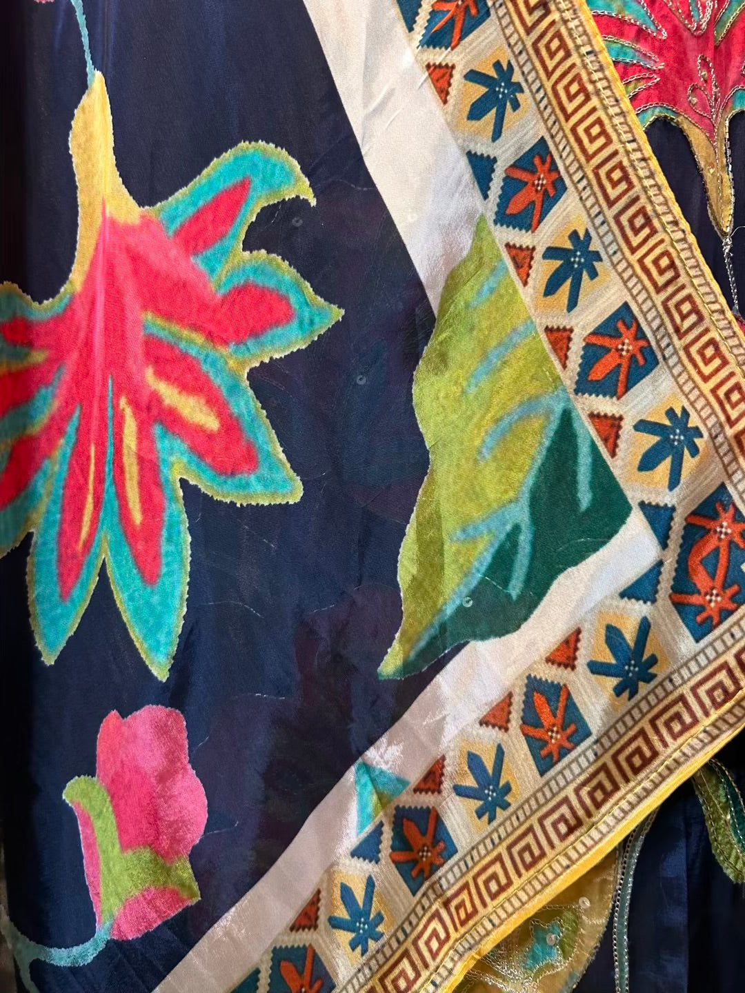 A celebration of softness, colour, and effortless grace — the Arvisha Floral Suit brings together the airiness of silk organza with the charm of delicate digital prints. The printed silk organza suit drapes beautifully, offering a light, refined sheen that elevates everyday elegance. Paired with a matching printed dupatta and a comfortable cotton shantoon bottom, this ensemble blends comfort, artistry, and sophistication in perfect harmony.
