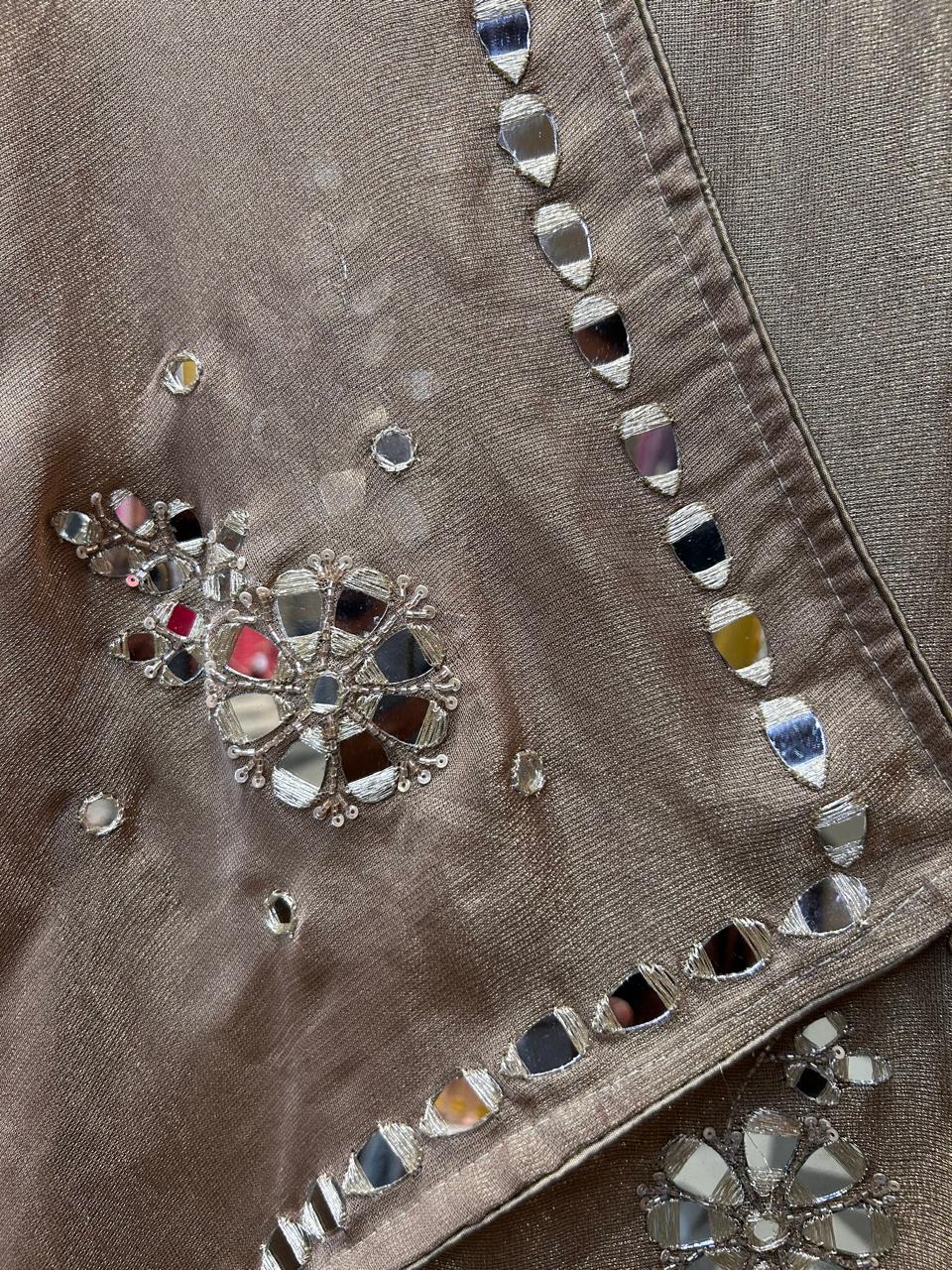 • Shimmer Organza Dupatta (2.25 mtrs) – Highlighted with real mirror work for added brilliance.
