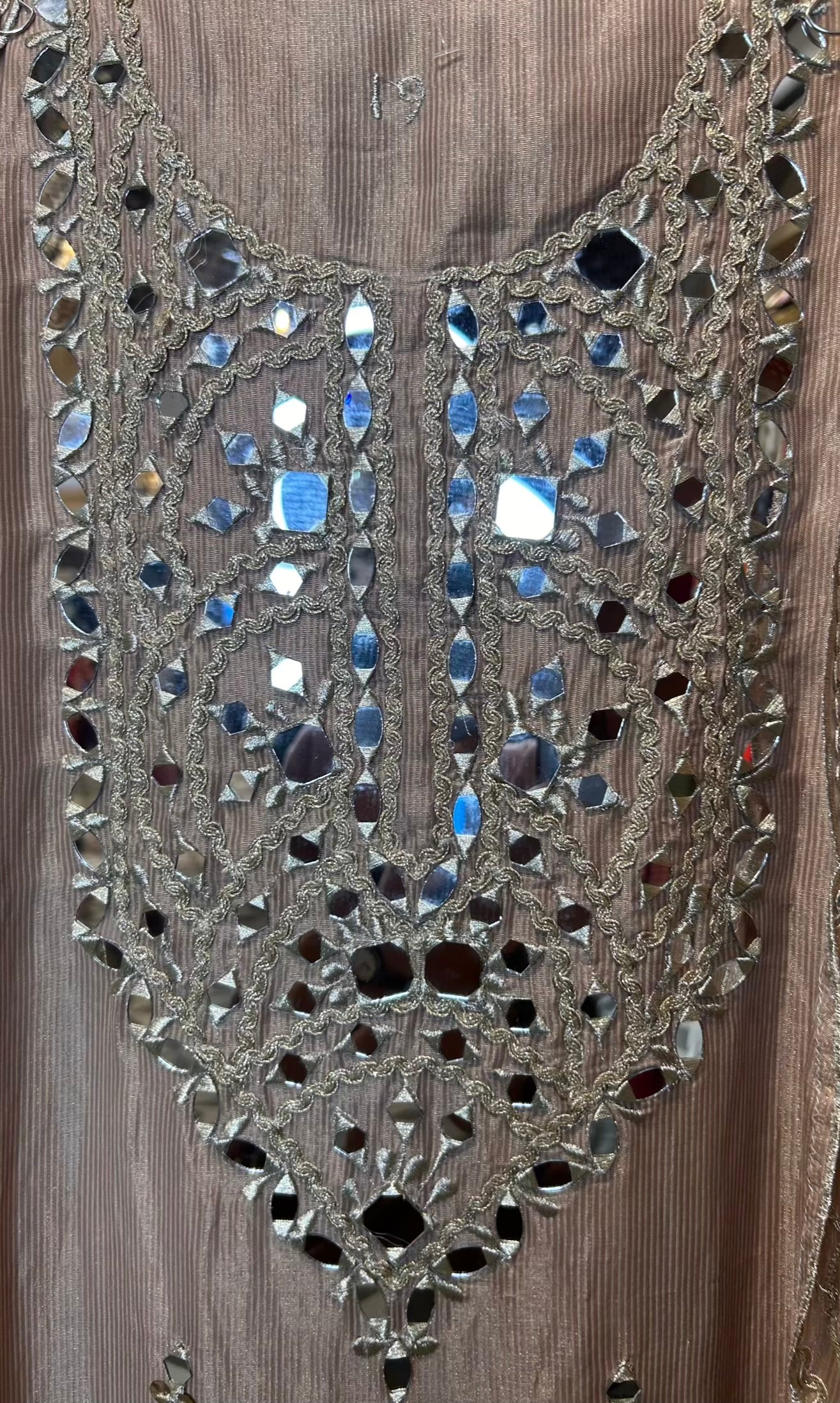 • Shimmer Organza Suit (2.5 mtrs) – Enhanced with real mirror and dori handwork for a luminous, handcrafted finish.