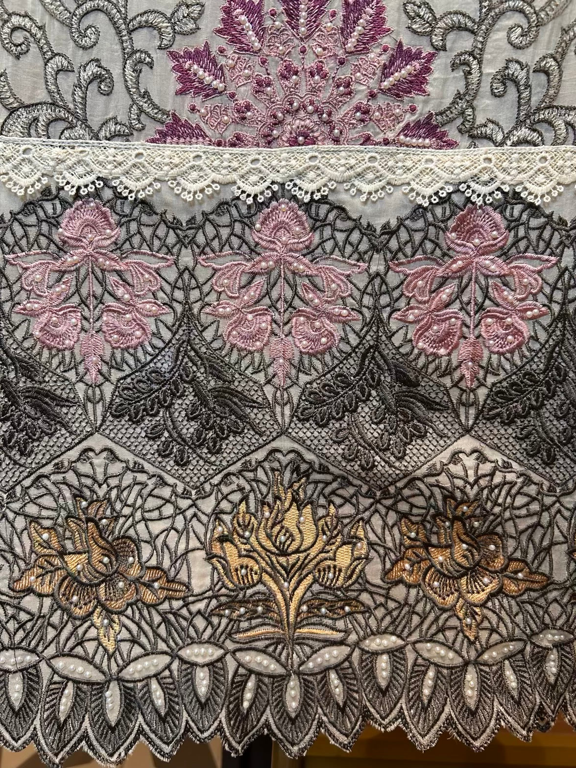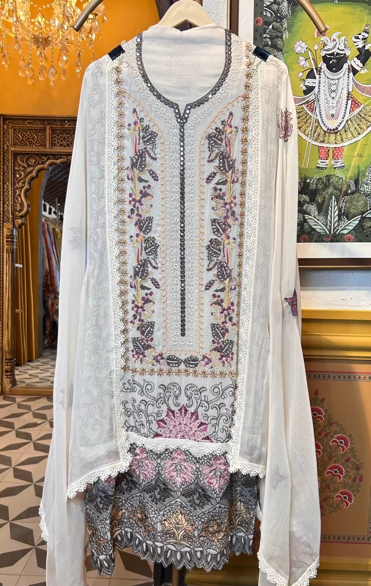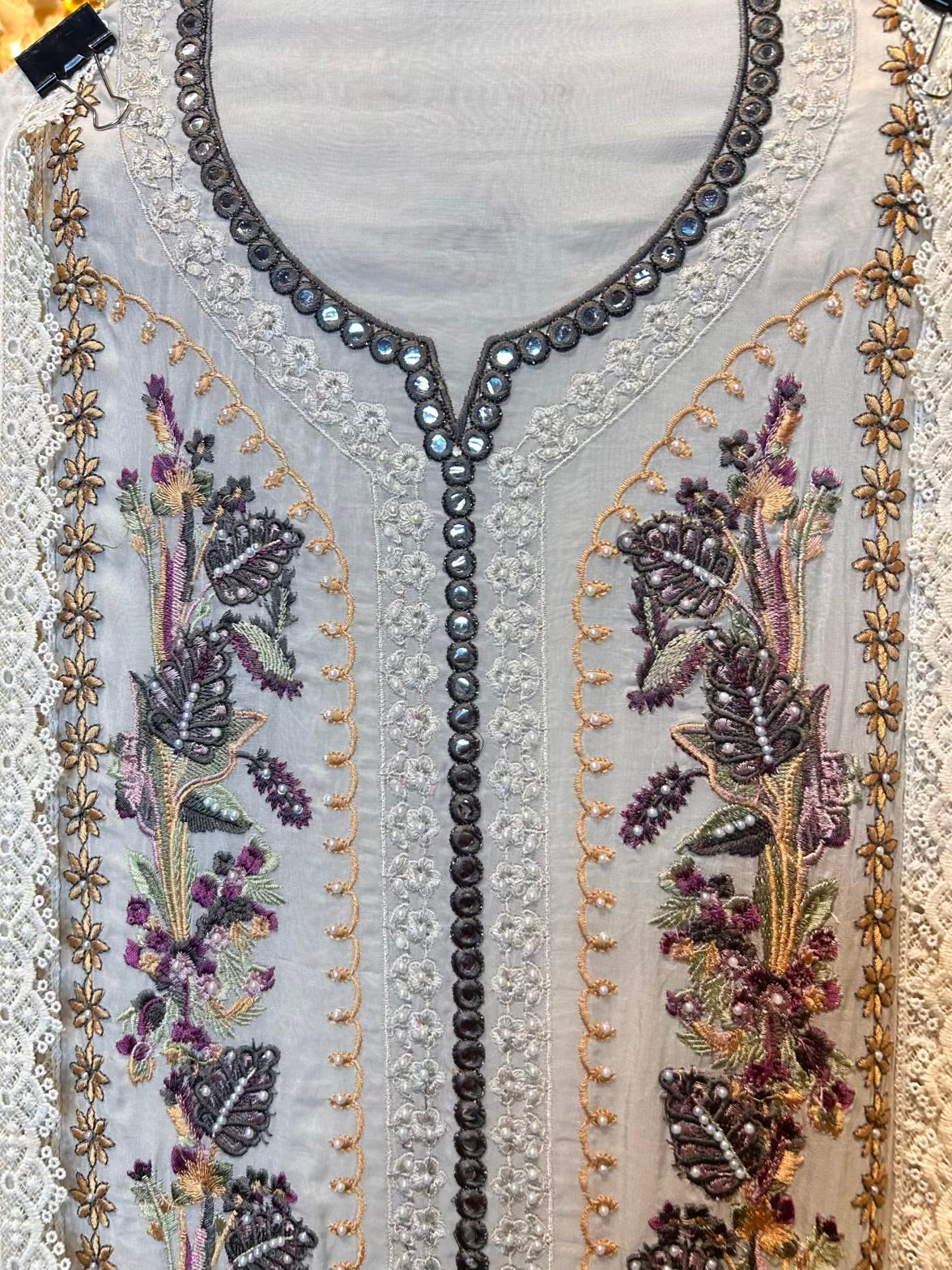 • Organza Suit (2.5 mtrs) – Embroidered all over with intricate handwork, showcasing artisanal finesse.