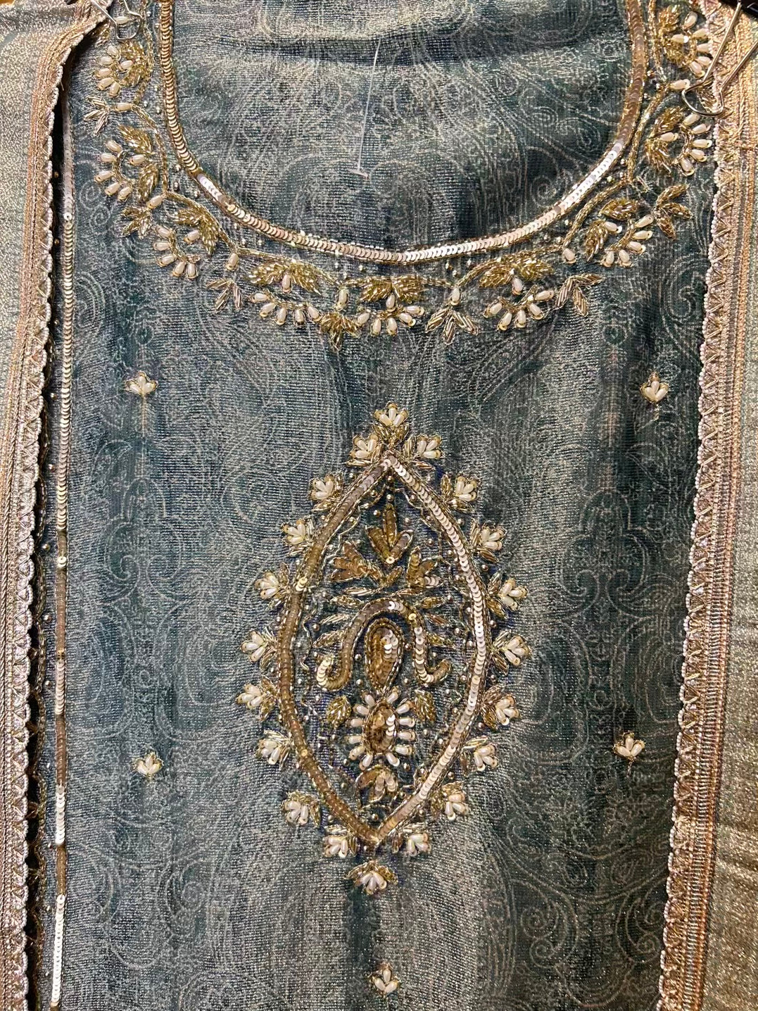 • Digital Printed Organza Suit (2.5 mtrs) – Elegantly crafted with intricate neckline handwork.