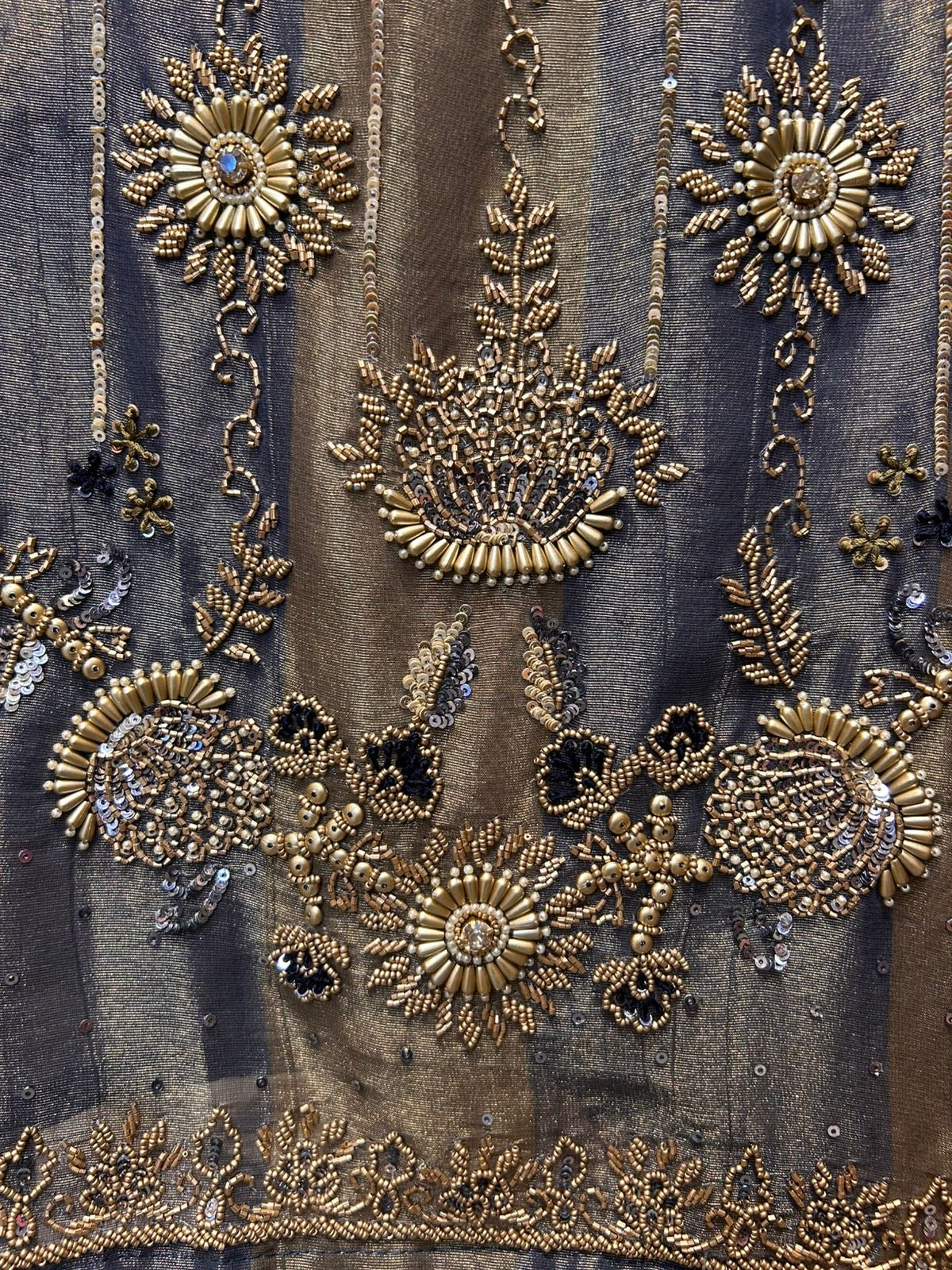• Shimmer Organza Dupatta (2.25 mtrs) – Detailed with four-sided handwork for a complete, refined look.