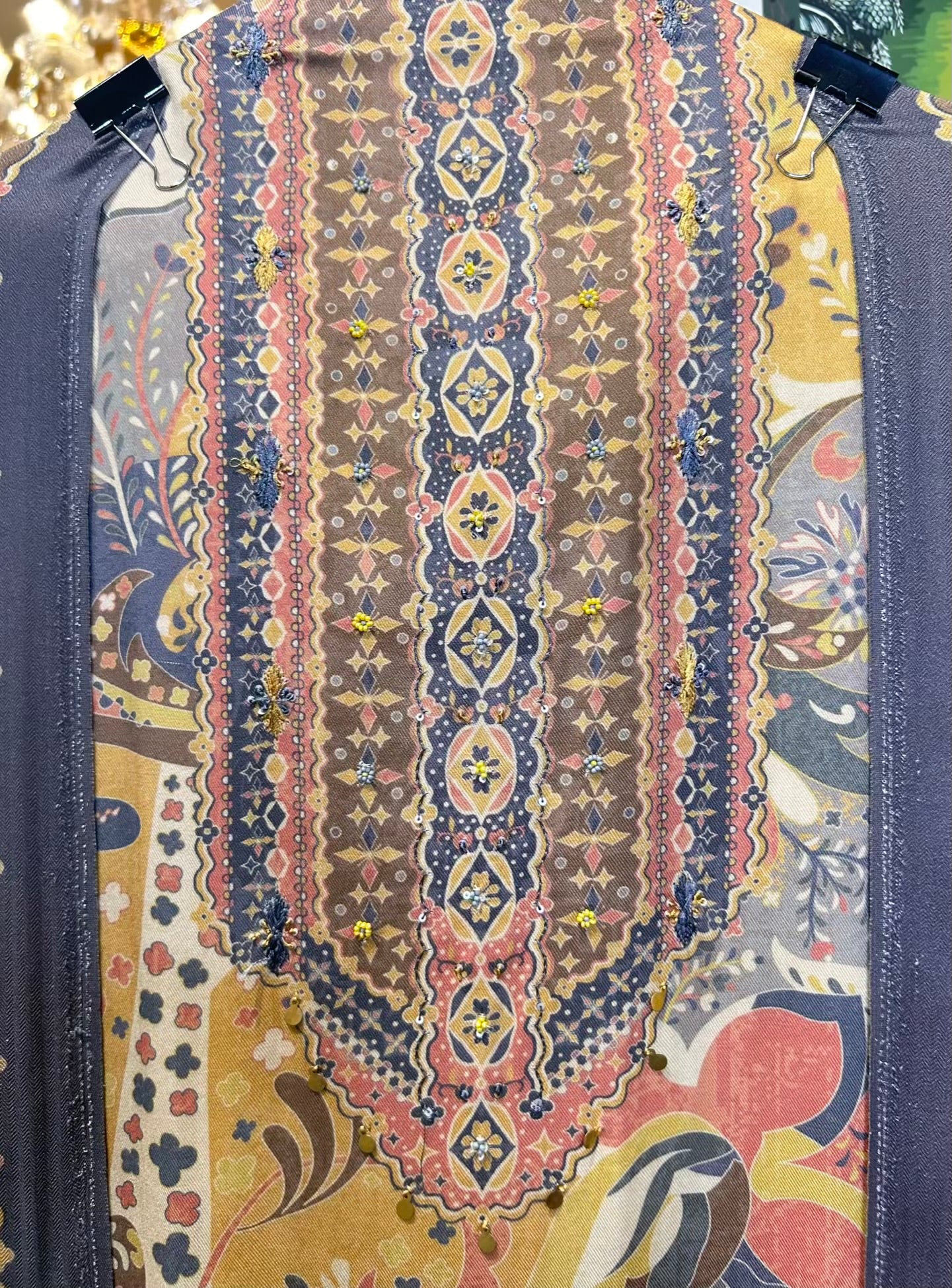 • Digital Printed Pashmina Shirt (2.5 mtrs) – Accentuated with intricate hand embroidery for a classic, elegant finish.