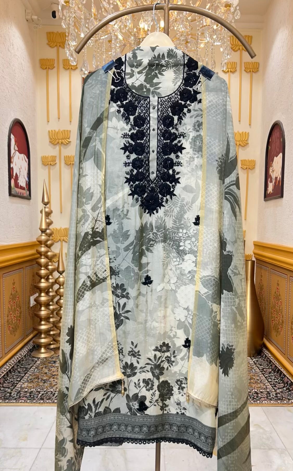 • Digital Printed Muslin Dupatta (2.25 mtrs) – Soft, airy, and perfectly coordinated to complement the suit.