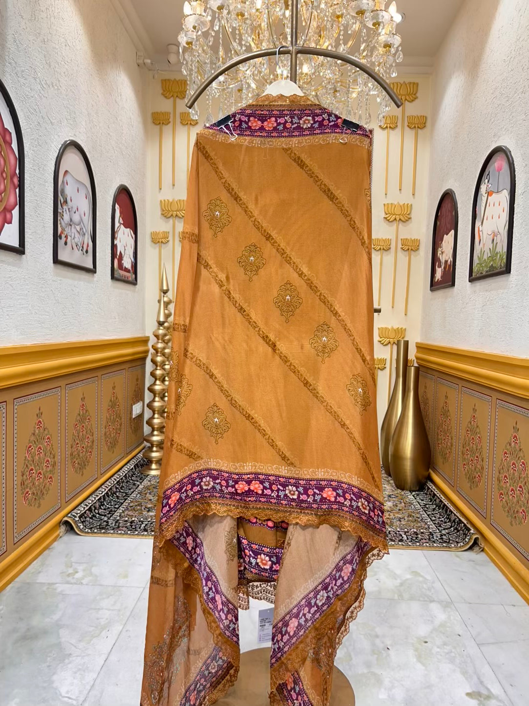 Elvaya Printed Pashmina Suit (Mustard)