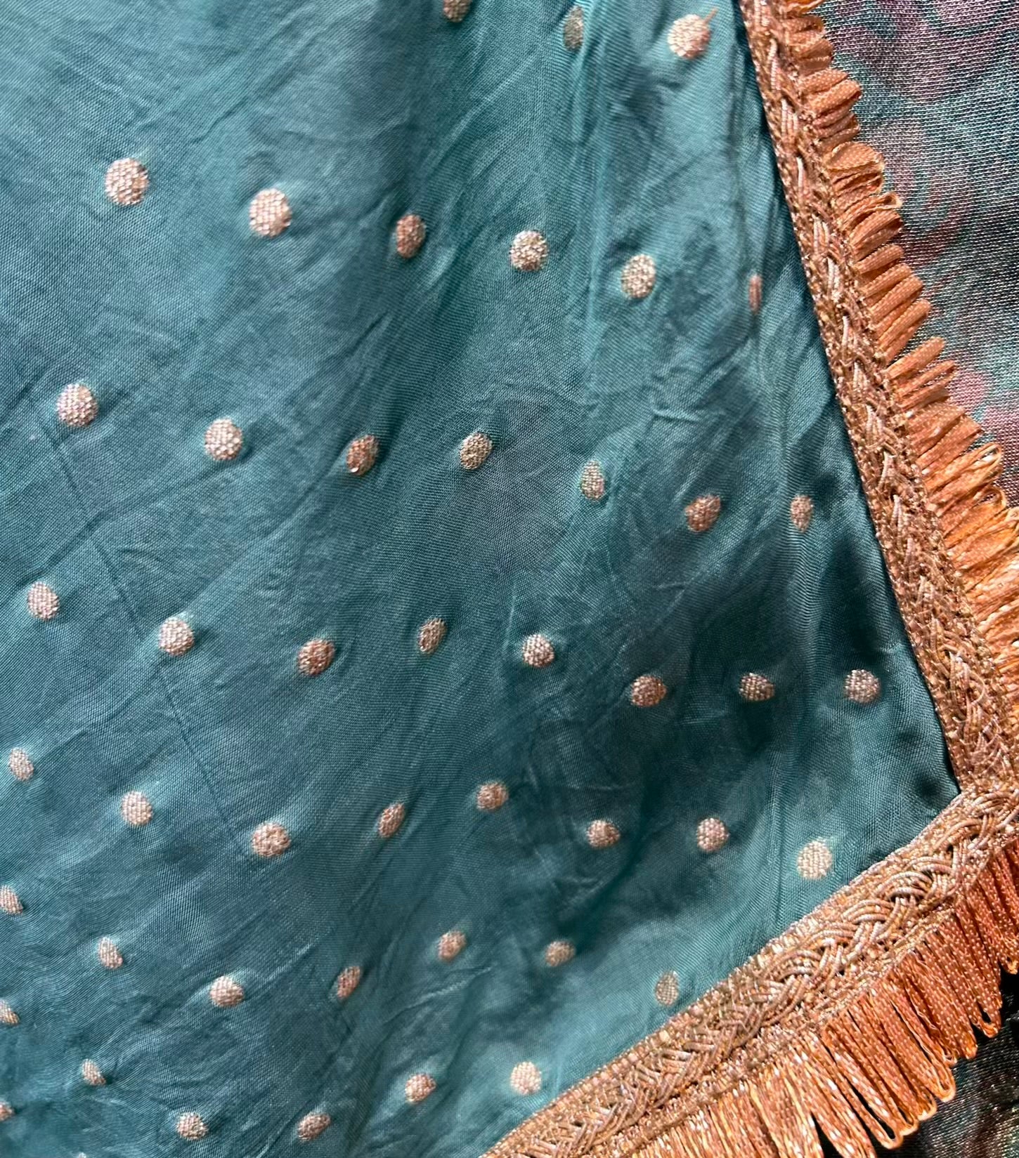 • Shimmer Organza Dupatta (2.25 mtrs) – Finished with a four-side kiran kinari lace, adding traditional flair.