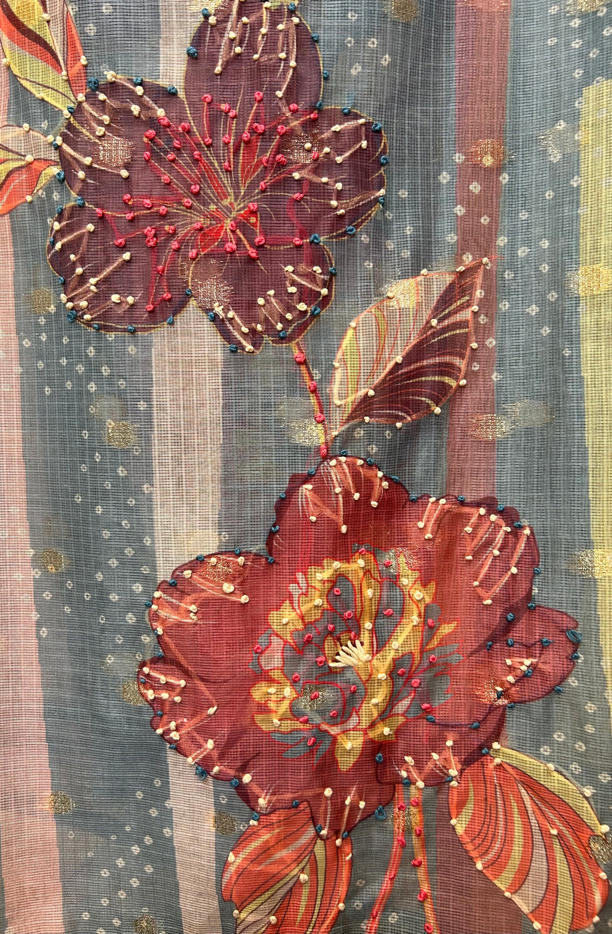 A lightweight, breathable shirt adorned with elegant digital prints and finished with subtle moti work along the ghera — understated and radiant.