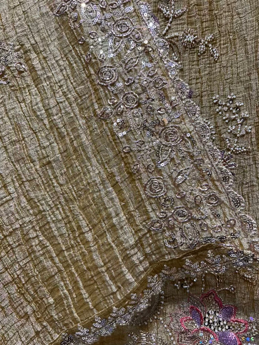 • Crush Tissue Organza Suit (2.5 mtrs) – Enhanced with intricate handwork for a soft, luminous finish.