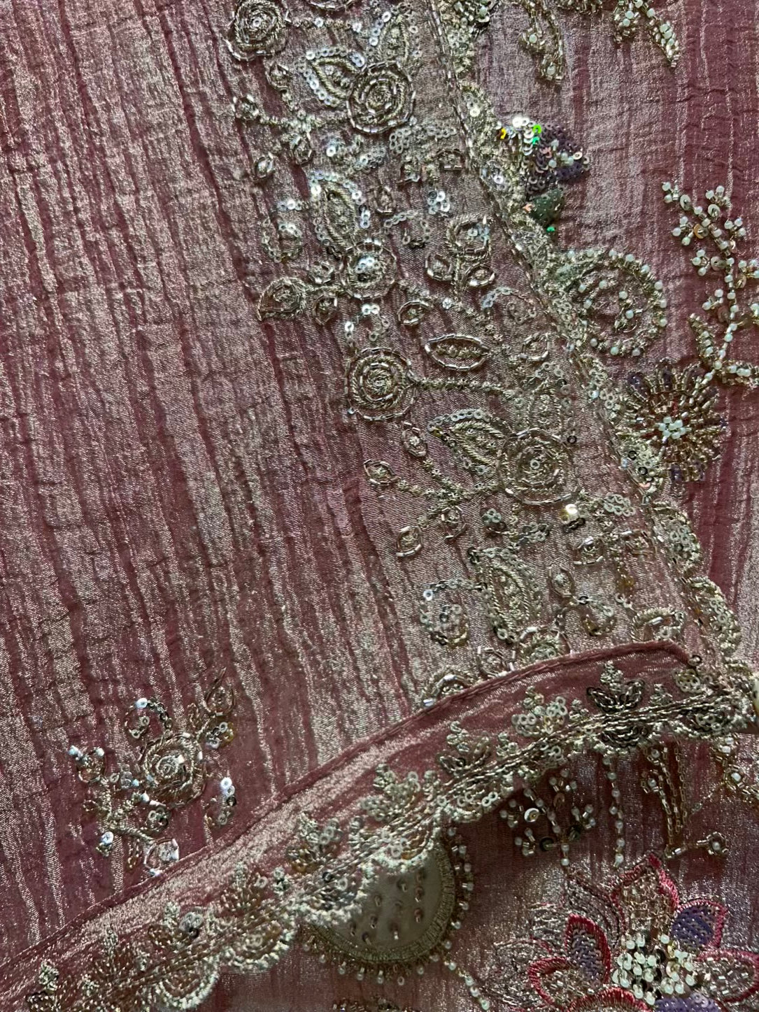 • Crush Tissue Organza Suit (2.5 mtrs) – Enhanced with intricate handwork for a soft, luminous finish.
