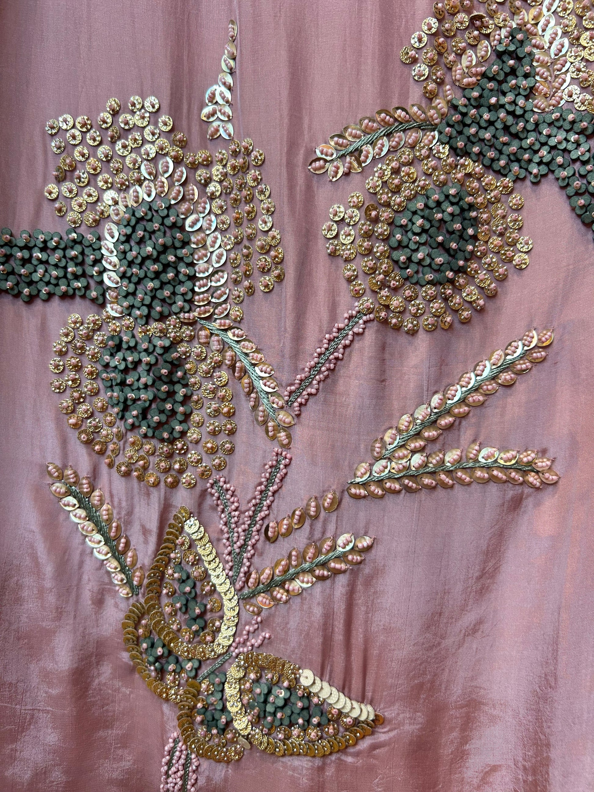A soft, fluid silhouette in shimmering organza, brought to life with meticulous hand embroidery. Elegant and versatile, it’s a piece that celebrates artisanal grace. -