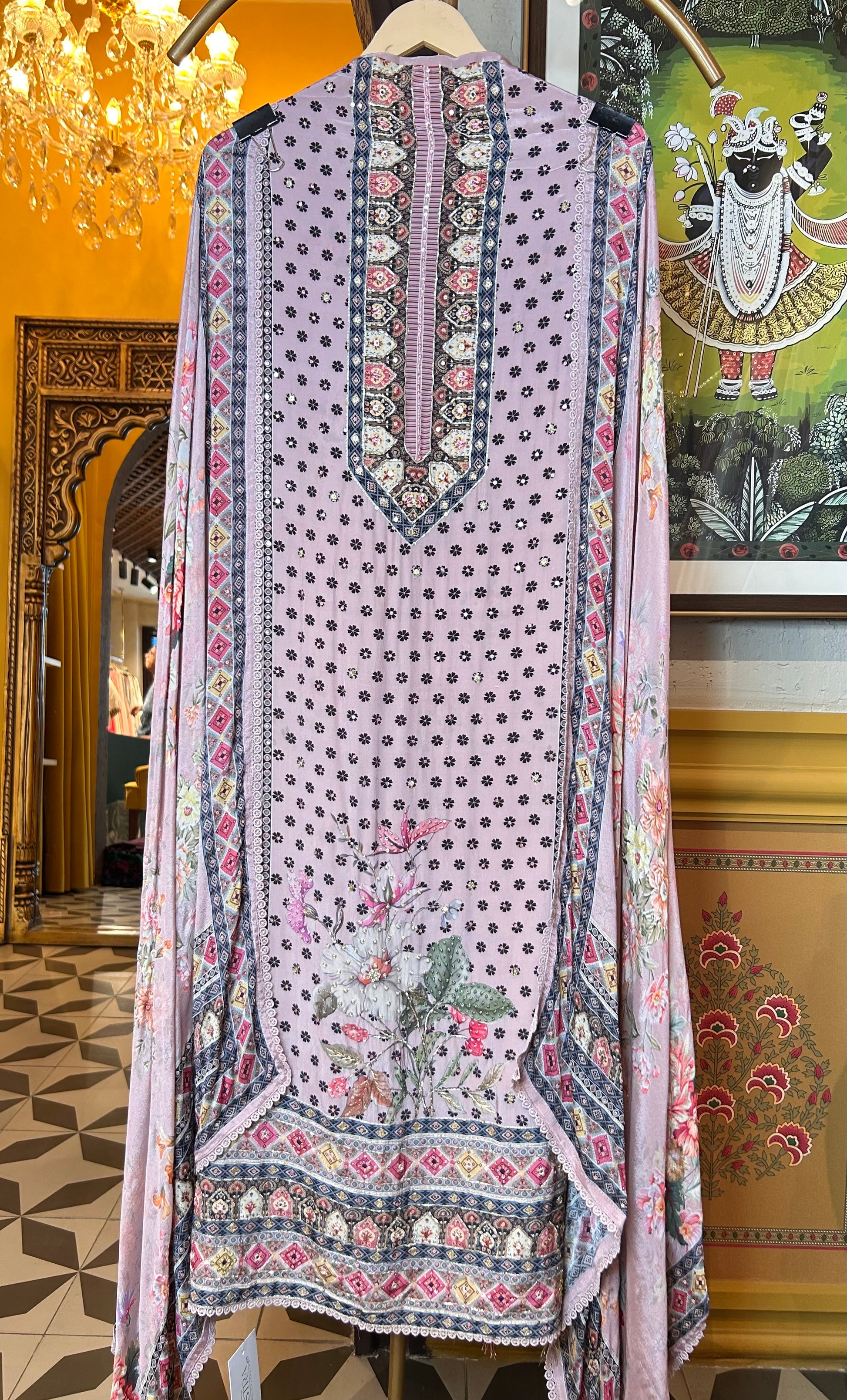Ethereal and featherlight, this dupatta adds a graceful finish with its airy drape, vibrant digital print, and fine lace edges.
