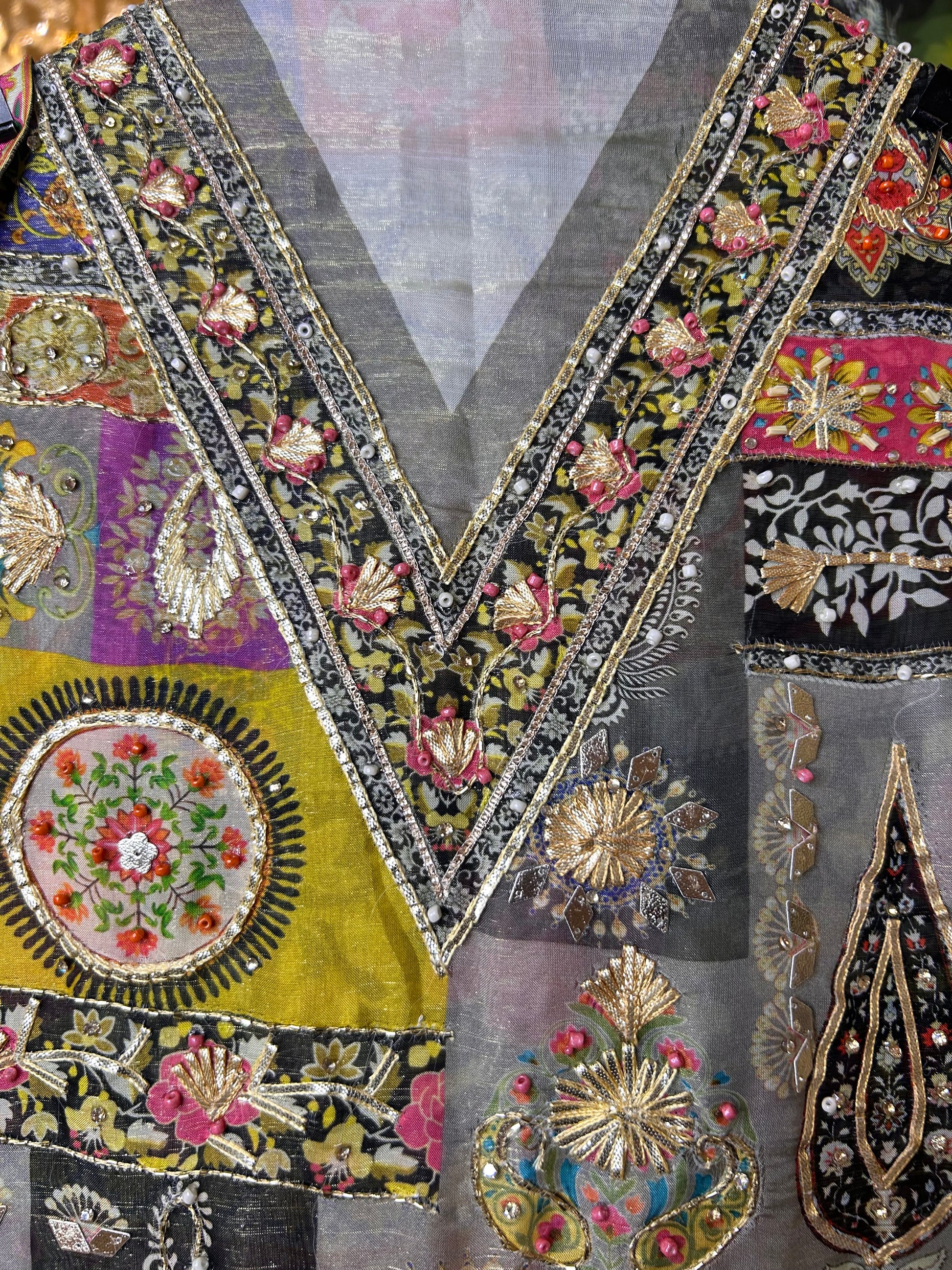 • Digital Printed Organza Shirt with Handwork – 2.5 meters