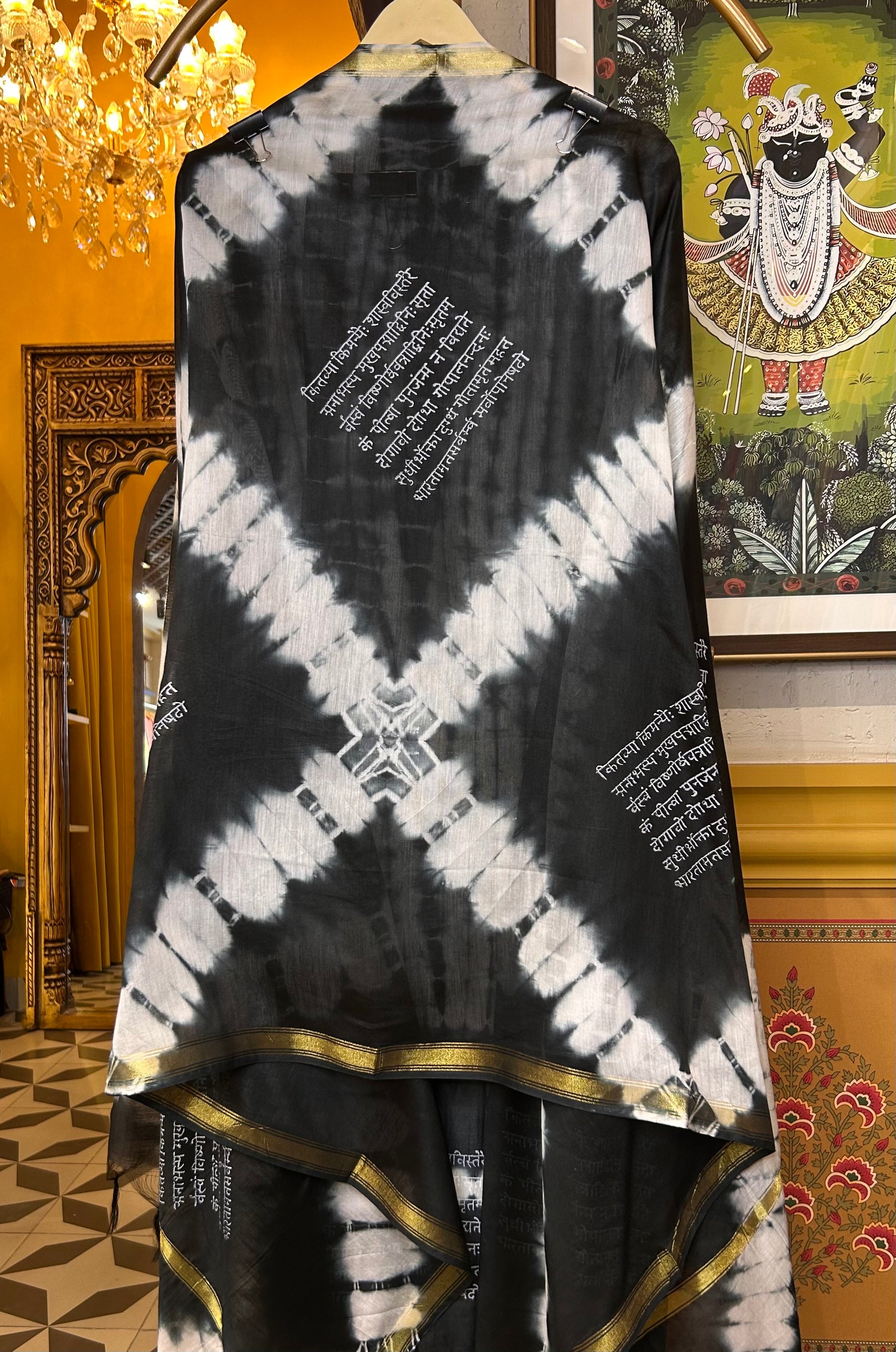 A light, flowing companion that mirrors the shirt’s motif, adding layers of elegance to your ensemble. -