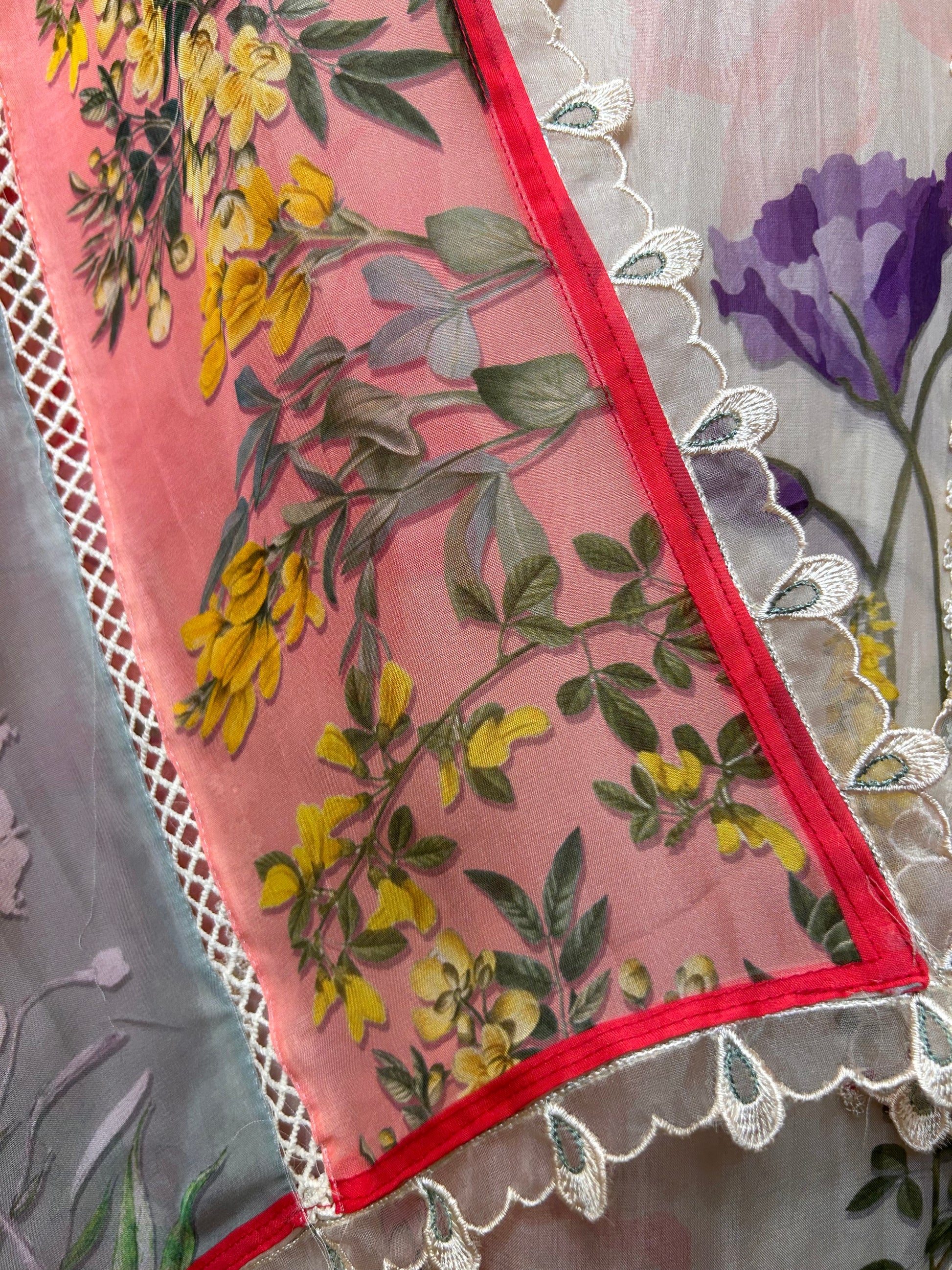 Delicate yet bold, the shirt features airy organza layered with vivid digital prints — creating a flowy silhouette that feels as light as it looks. -