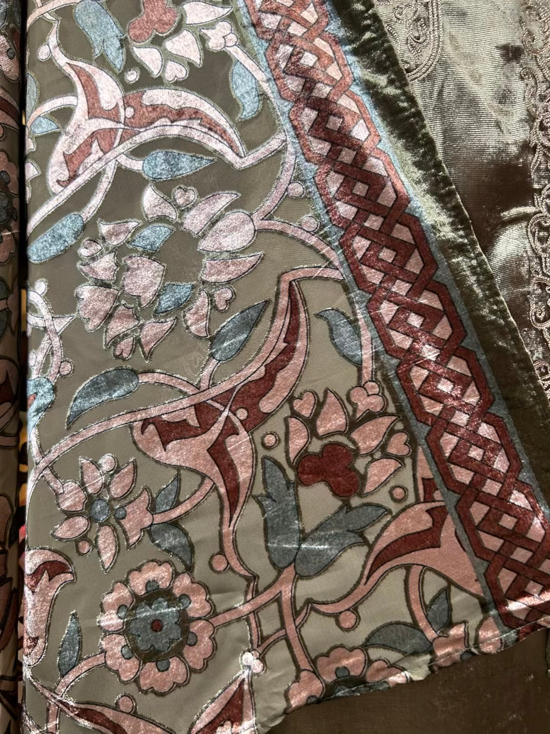 • Velvet Shirt (2.5 mtrs) – Embroidered with fine aari and zari work for a luminous, intricate finish.