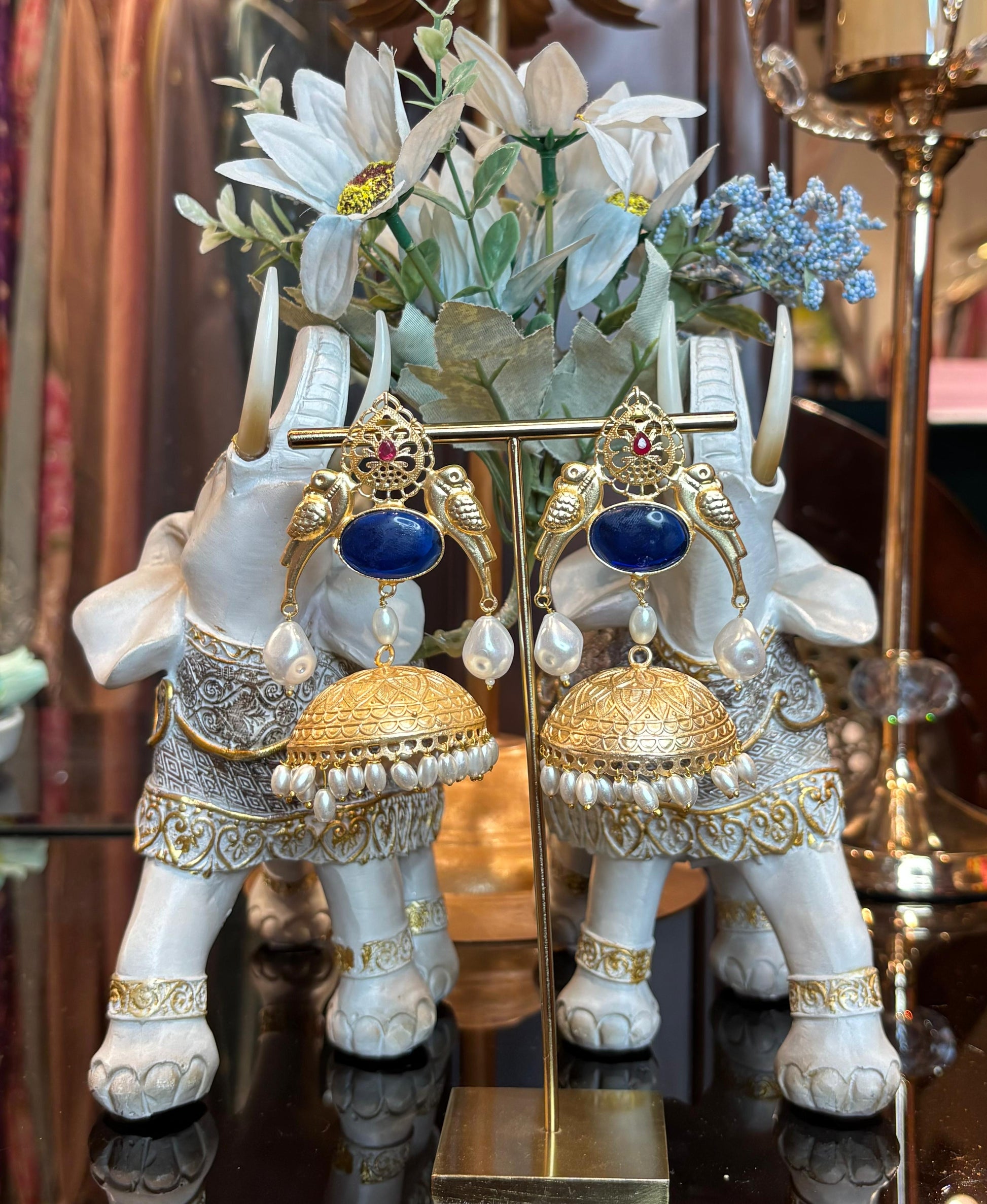 Mayura Jhumka Earrings (Blue)