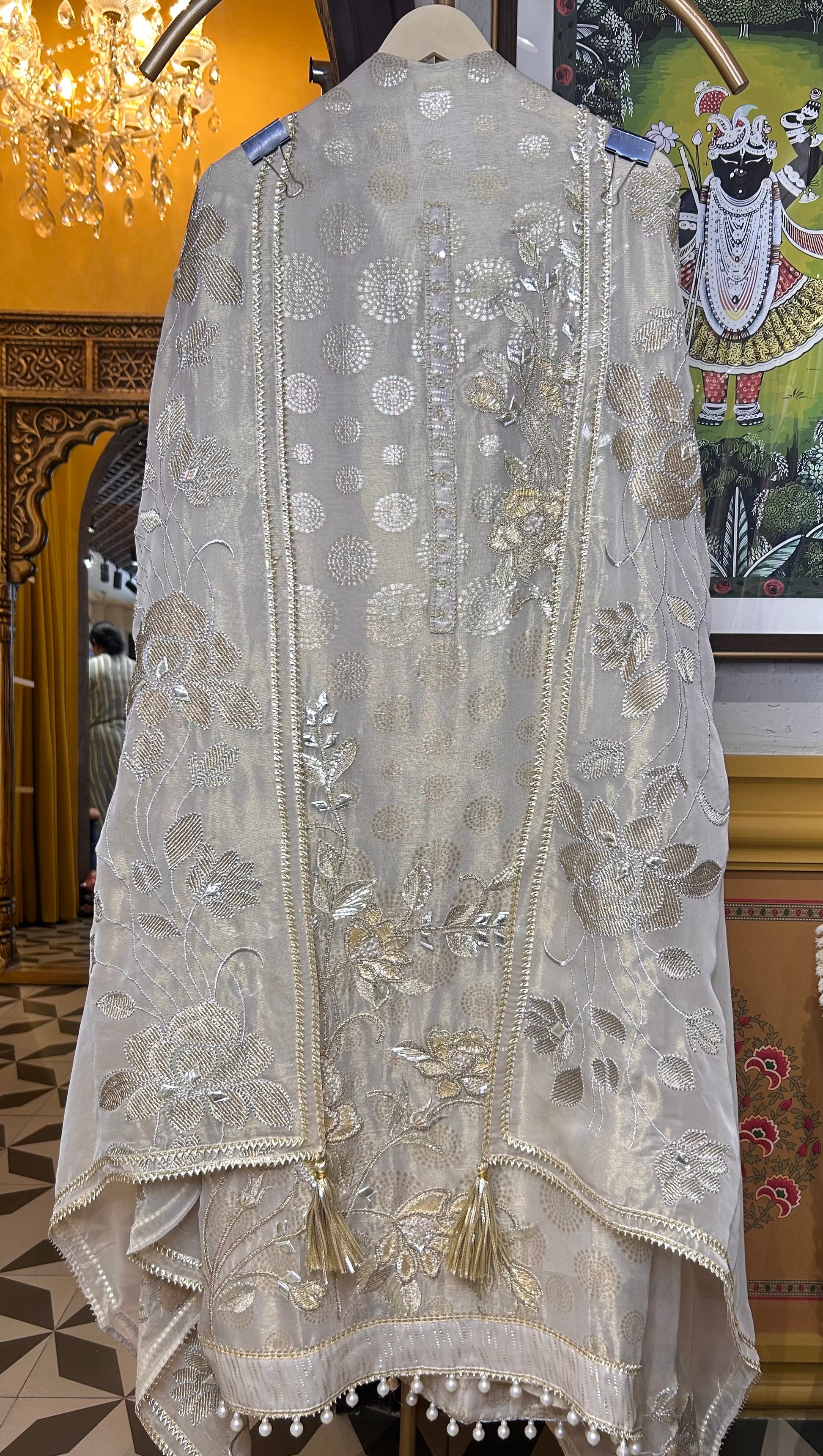 • Shimmer Organza Shirt with Neckline Patti Handwork & Ghera Moti, Gota, and Dori Work – 2.5 meters