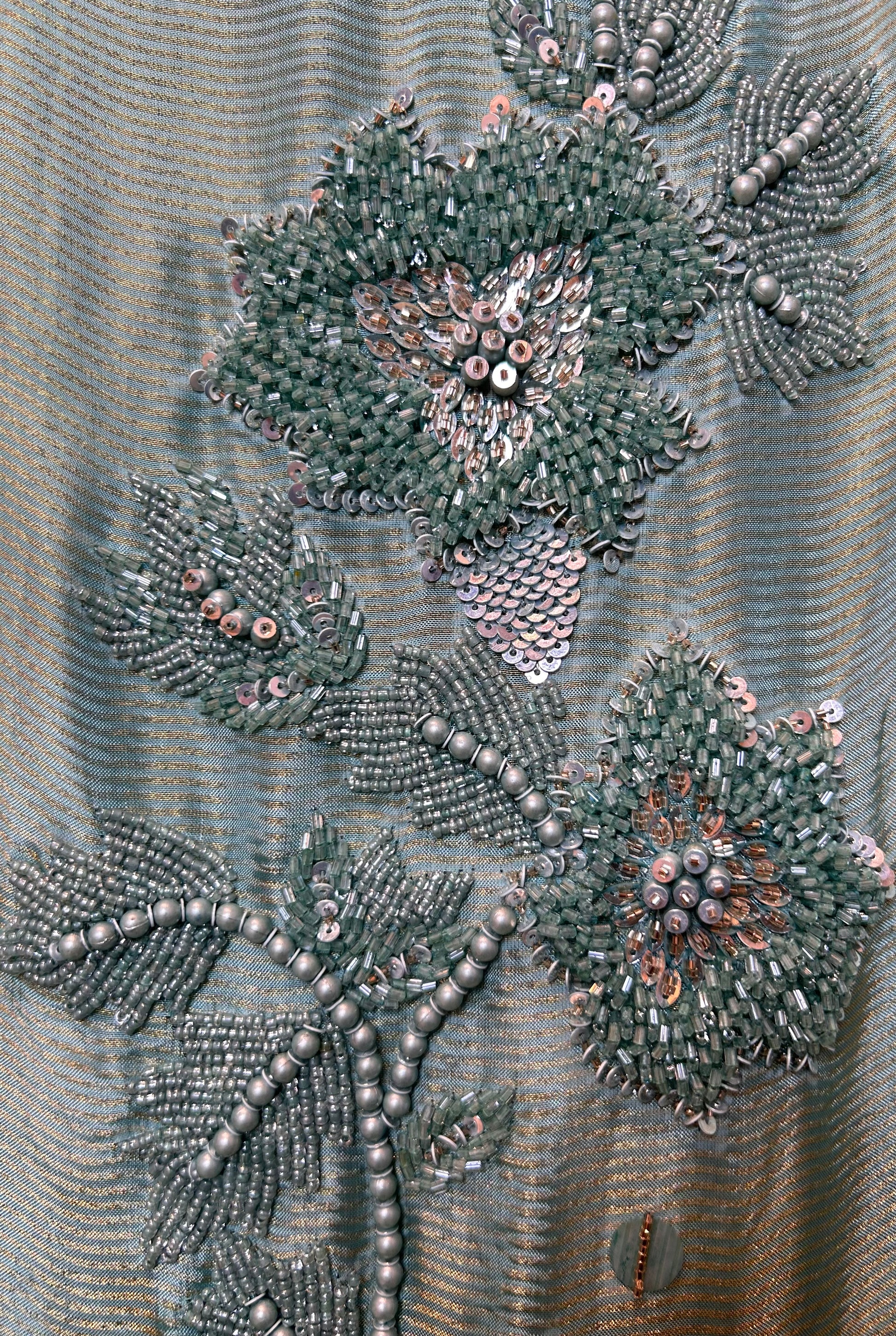 Sheer sophistication meets artisanal finesse — the delicate shimmer organza base is elevated with intricate hand embroidery, making it perfect for both intimate gatherings and festive moments. -