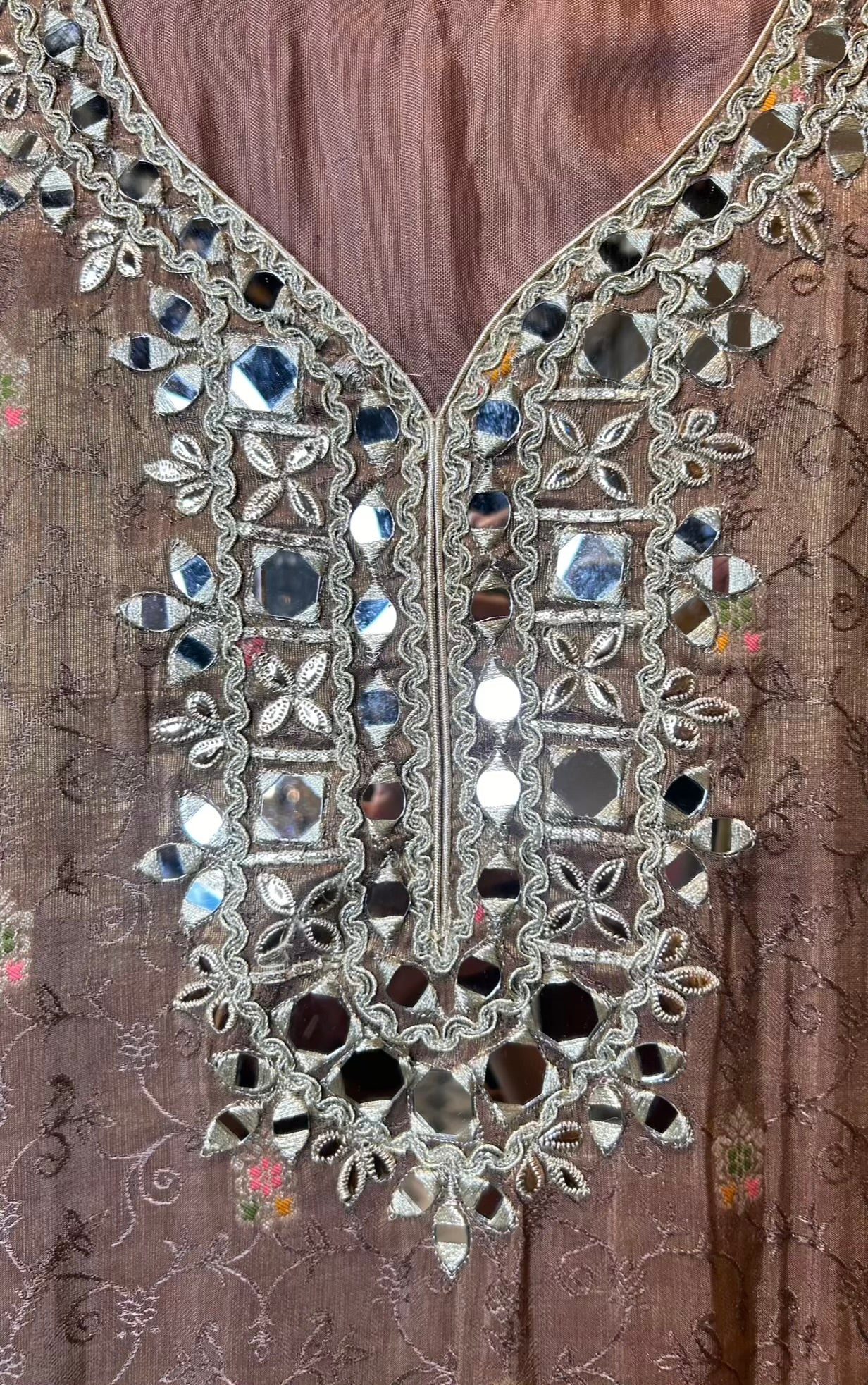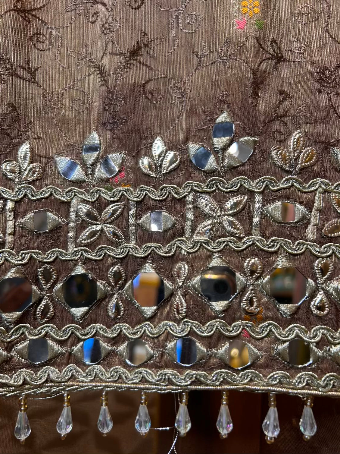 • Shimmer Organza Stitched Suit (42 chest size) – Embellished with delicate Dori and mirror handwork for a radiant finish.