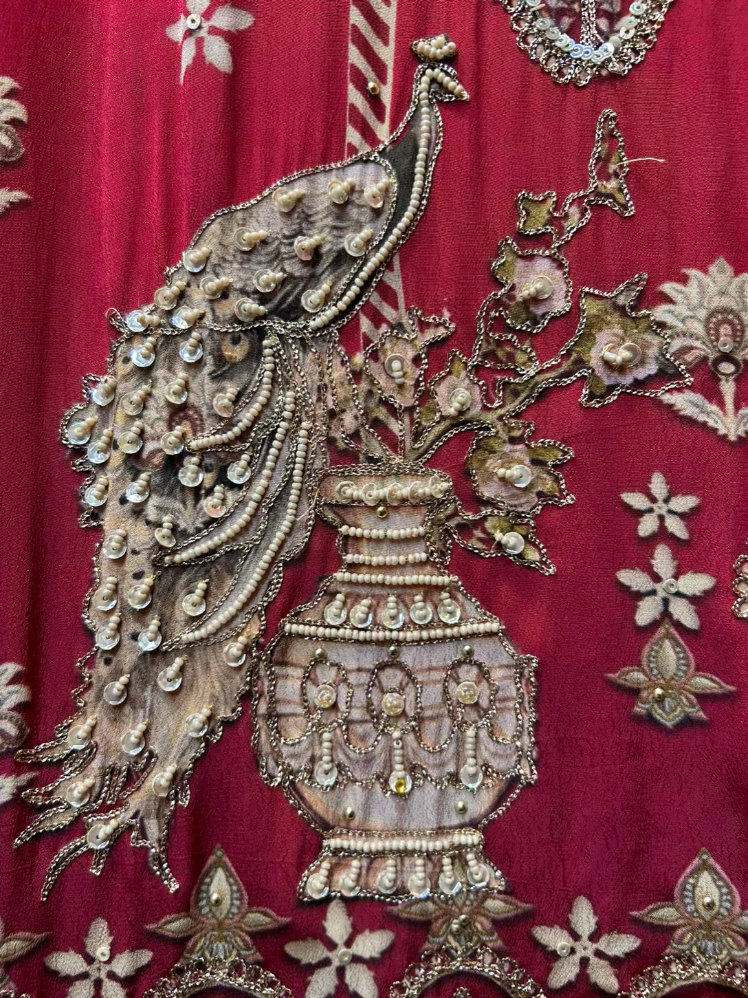 • Digital Printed Crepe Suit (2.5 mtrs) – Enhanced with intricate handwork for a subtle yet radiant finish.