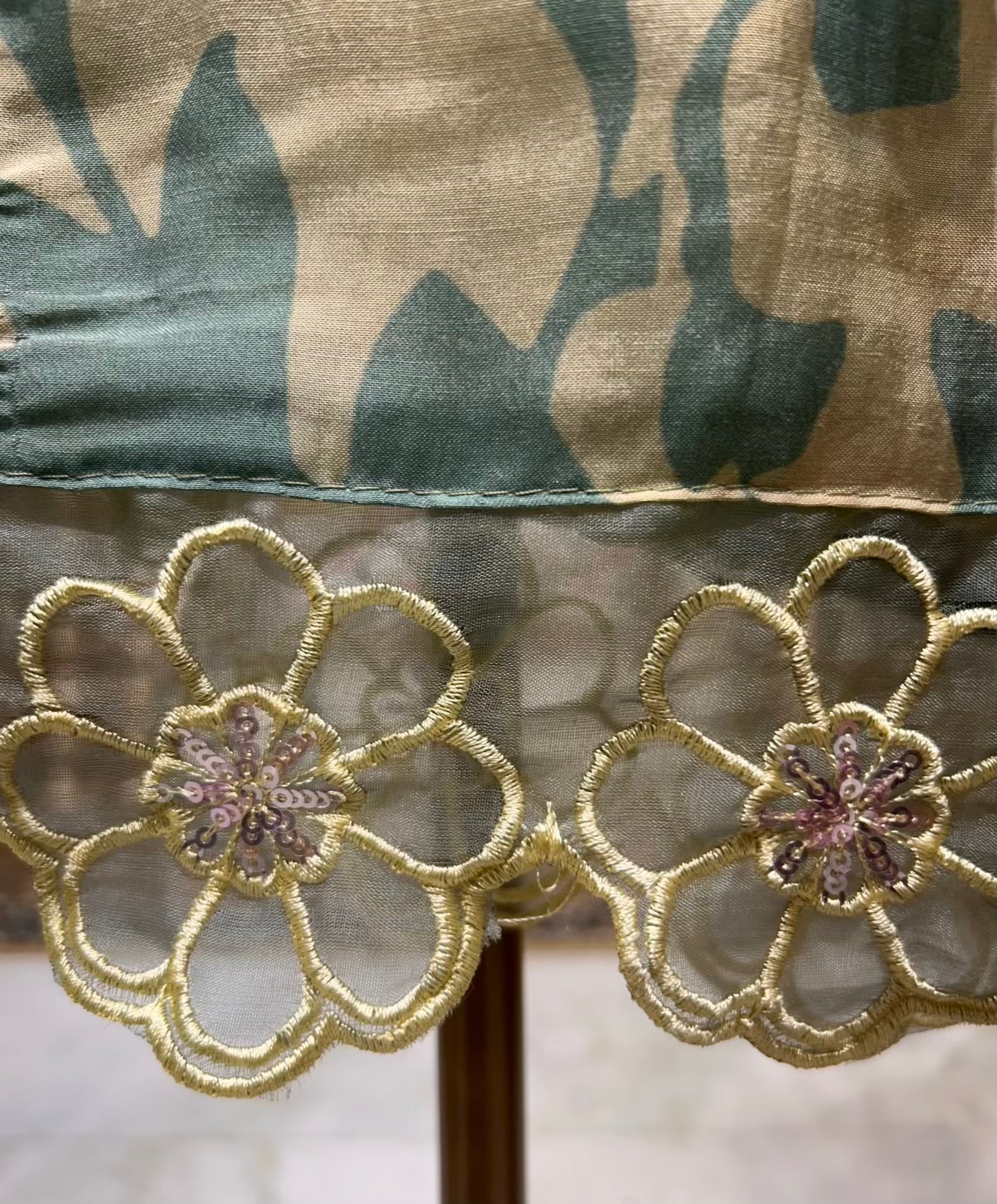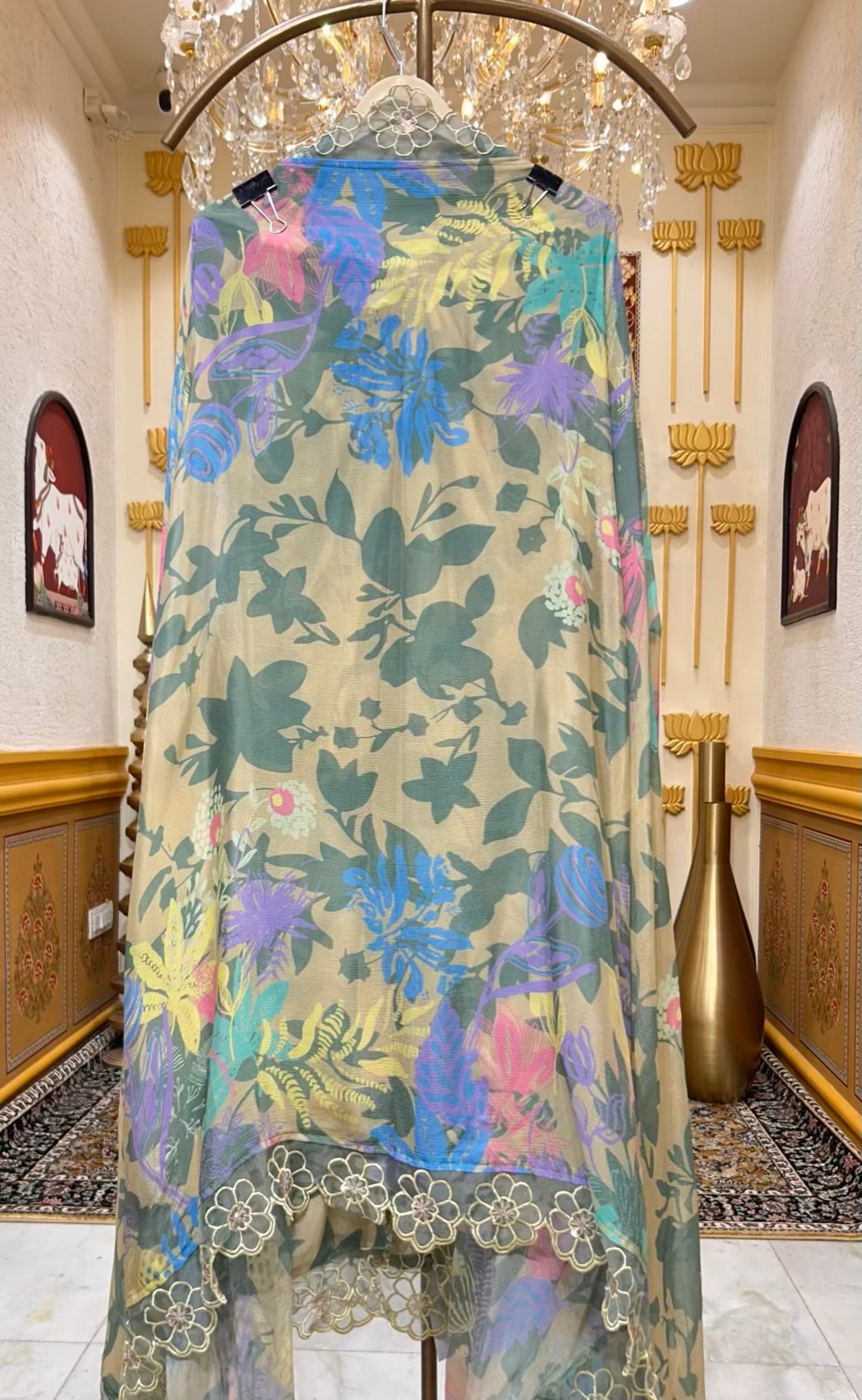 • Digital Printed Chinon Dupatta (2.25 mtrs) – Lightweight and elegant, finished with a four-side organza cut border for a refined drape.