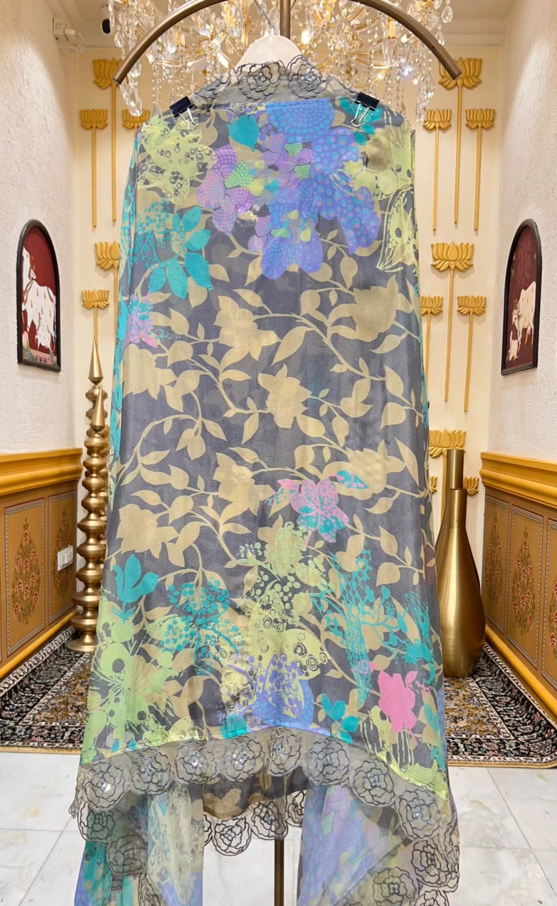 • Digital Printed Chinon Dupatta (2.25 mtrs) – Lightweight and elegant, finished with a four-side organza cut border for a refined drape.