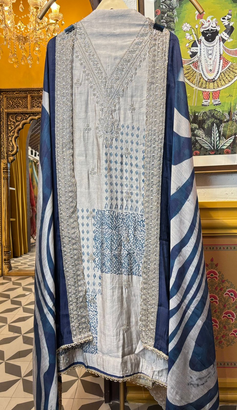 • Silk Digital Printed Shirt (2.5 mtrs) – Enhanced with detailed neckline handwork for a sophisticated touch.