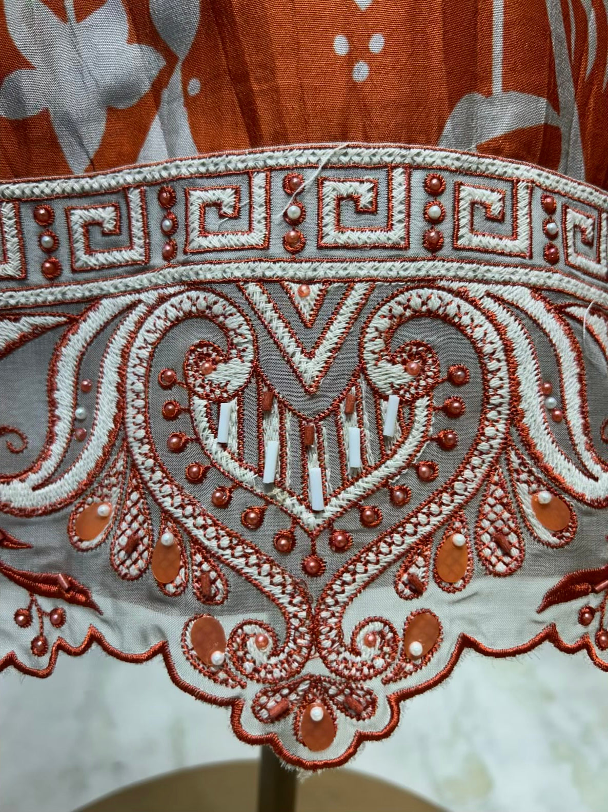 • Printed Silk Suit (2.5 mtrs) – Digitally printed and detailed with elegant neckline thread embroidery.