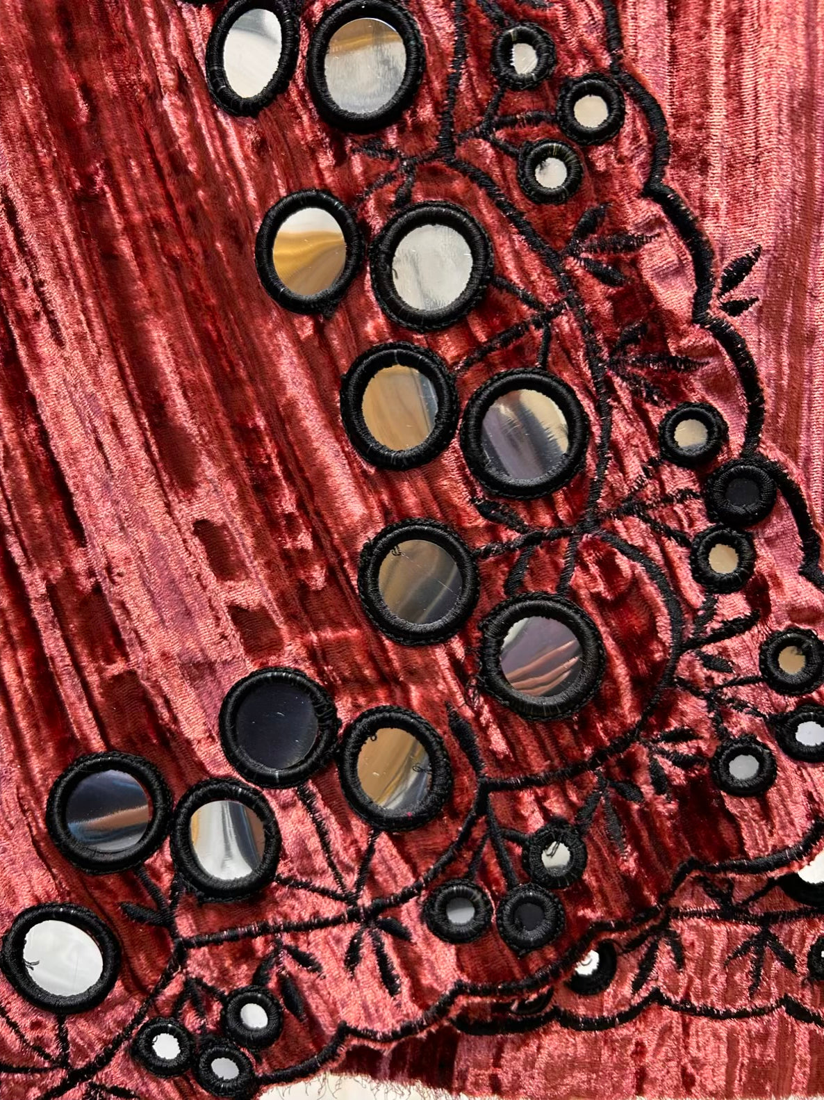 • Crush Velvet Dupatta (2.25 mtrs) – Detailed with four-side cutwork borders and thread embroidery for a regal finish.