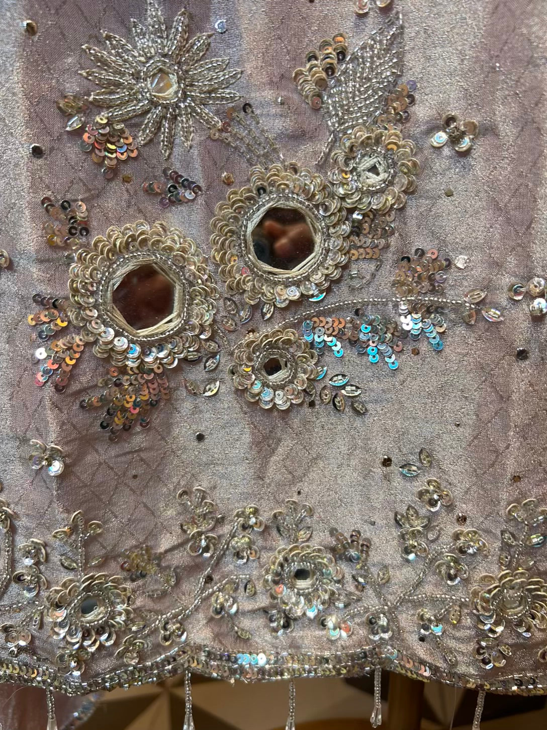 • Shimmer Organza Dupatta (2.25 mtrs) – Lightweight and elegant, complementing the handcrafted detailing.