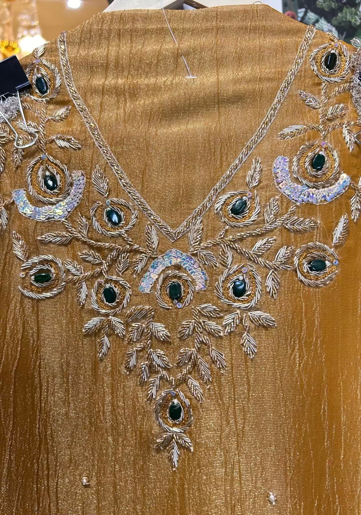 • Crush Tissue Organza Suit (2.5 mtrs) – Embellished with neckline handwork for a graceful touch.