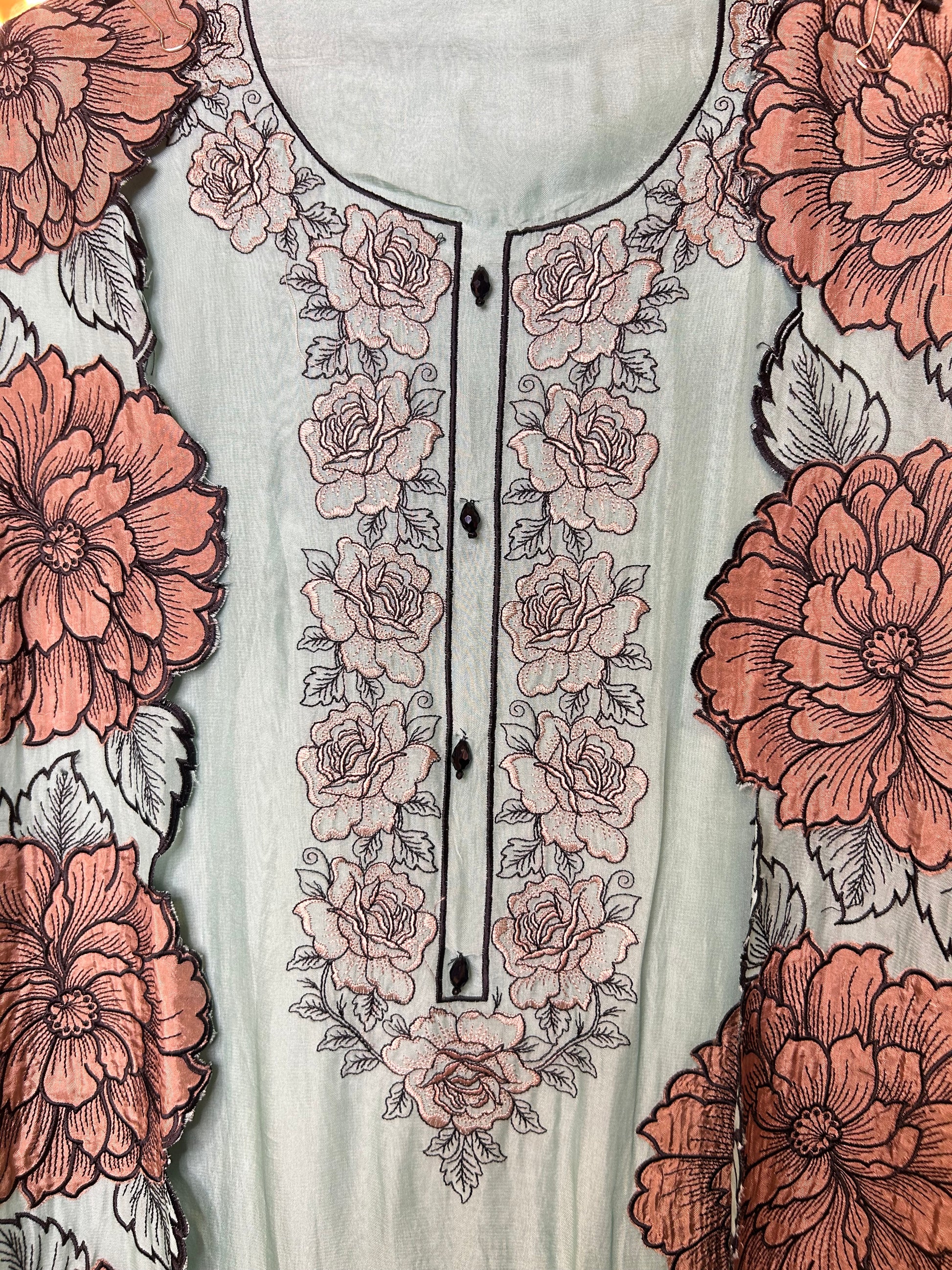 • Organza Shirt with Appliqué Work – 2.5 meters