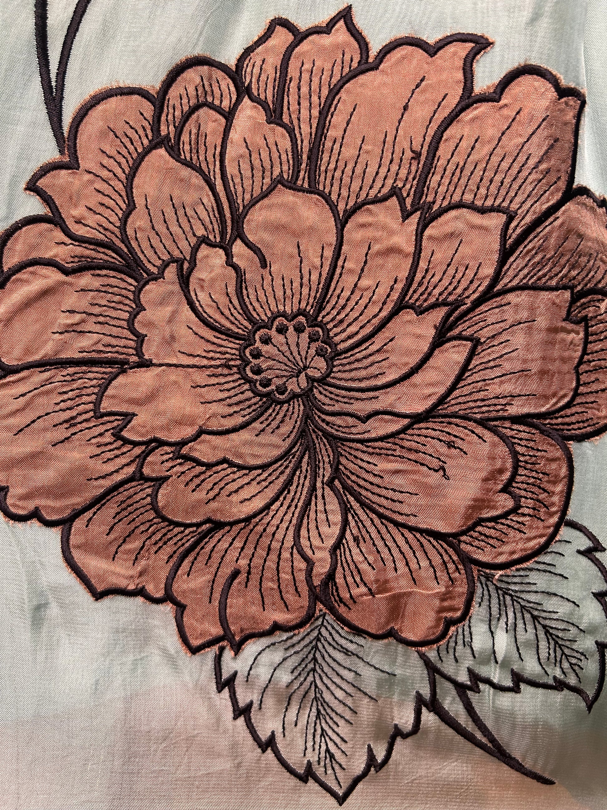 Fine organza intricately adorned with appliqué craftsmanship, lending depth, texture, and an air of refined sophistication.