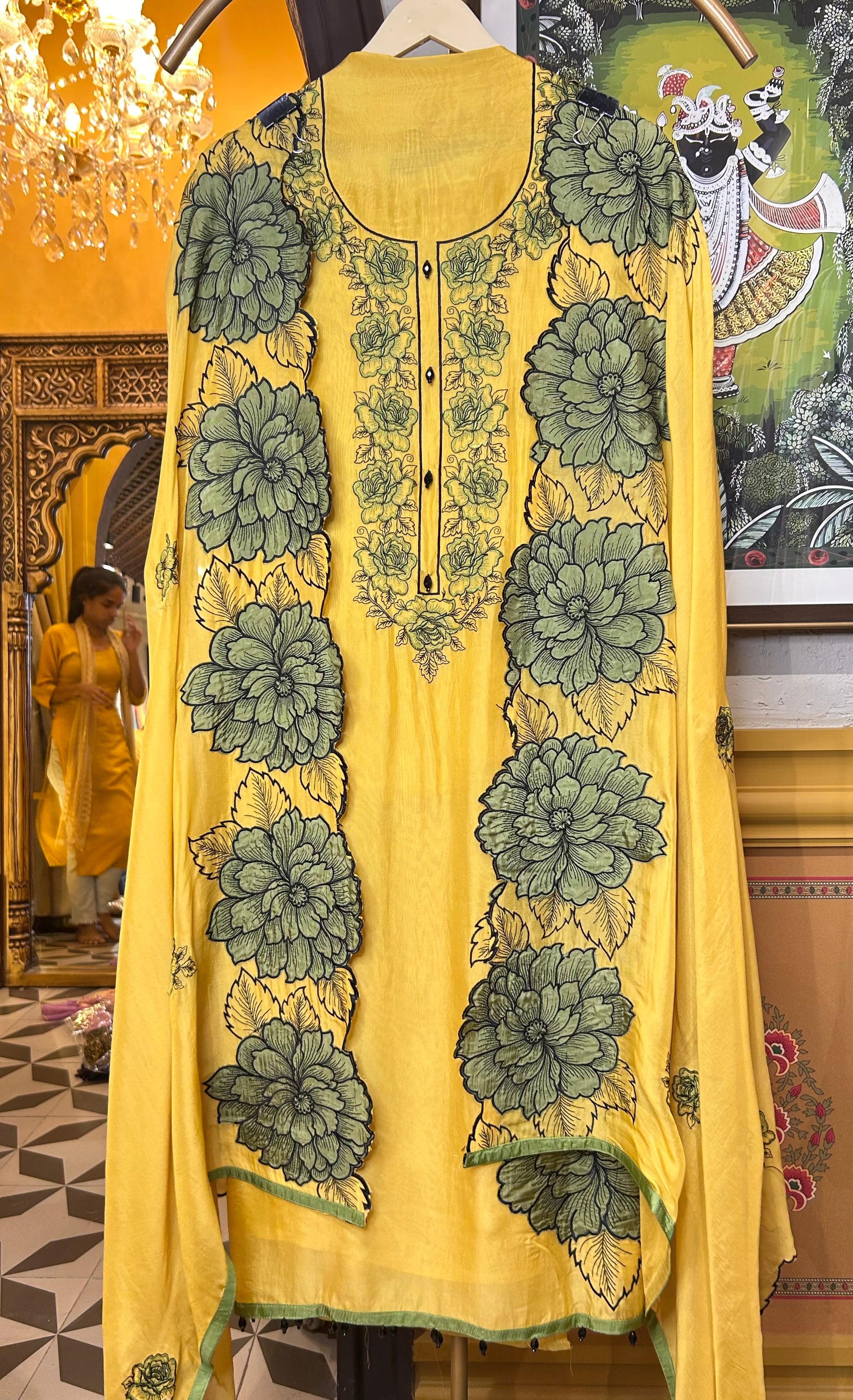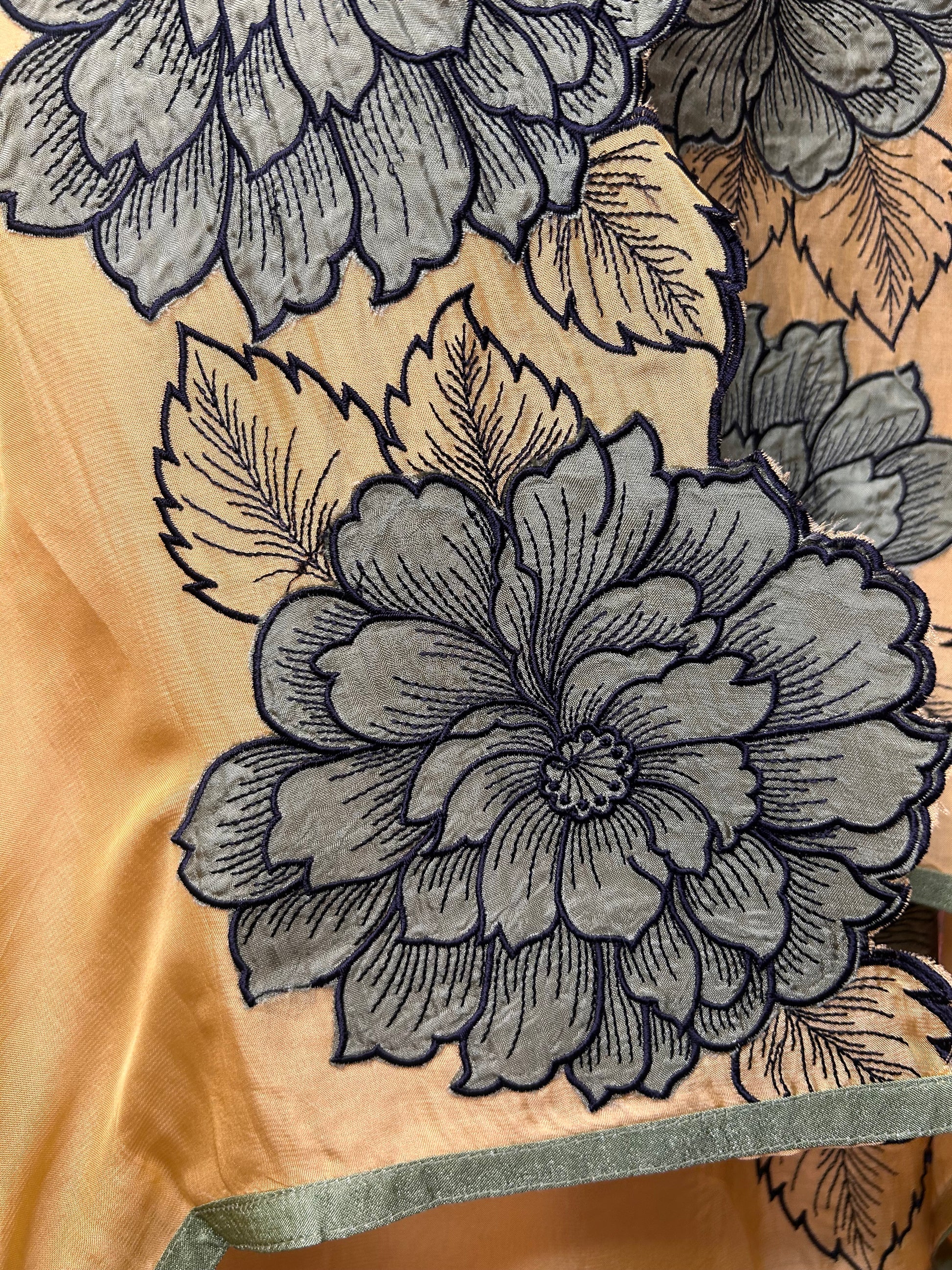 A lightweight drape finished with appliqué motifs, balancing grace with a hint of artistry.