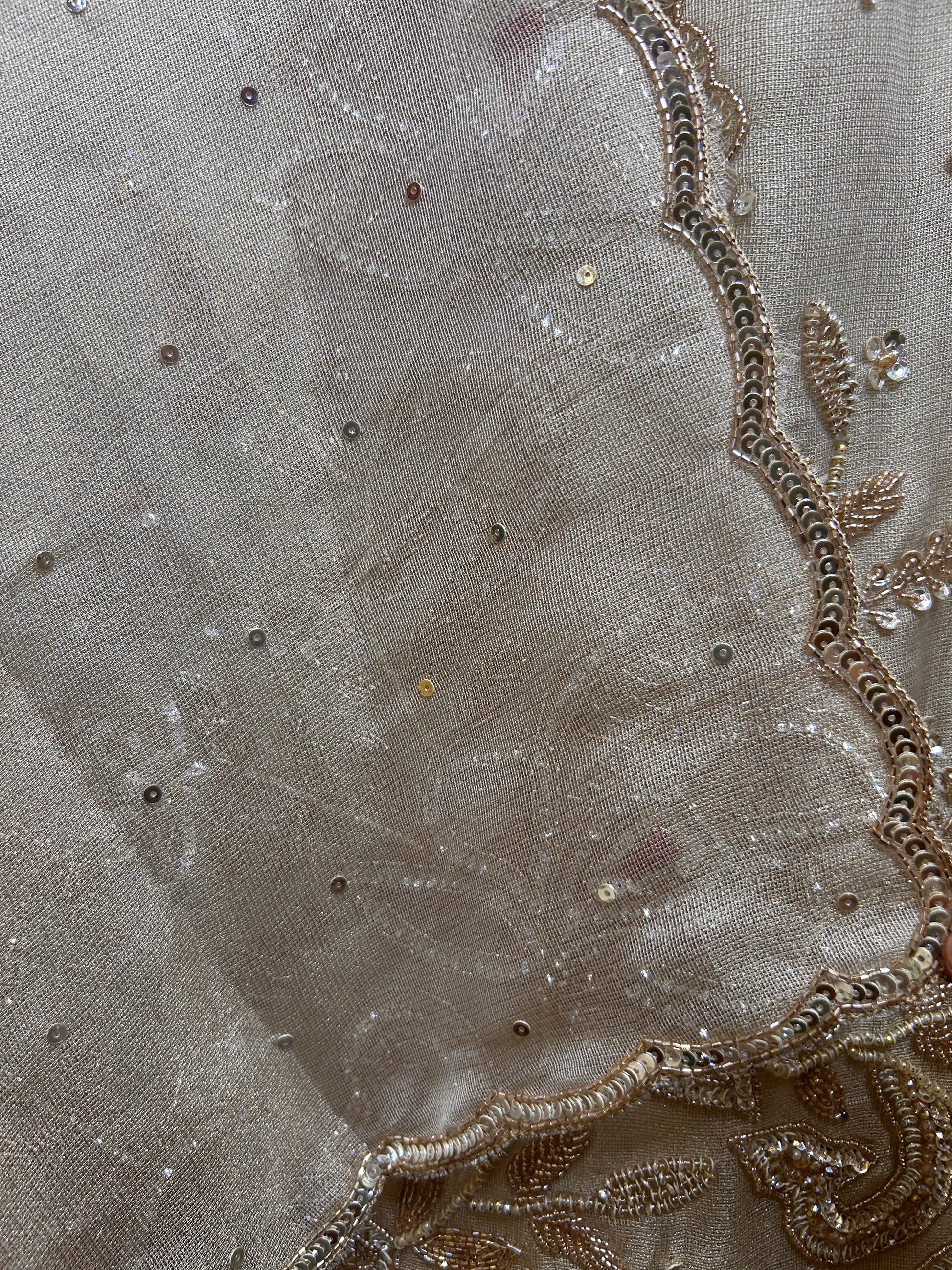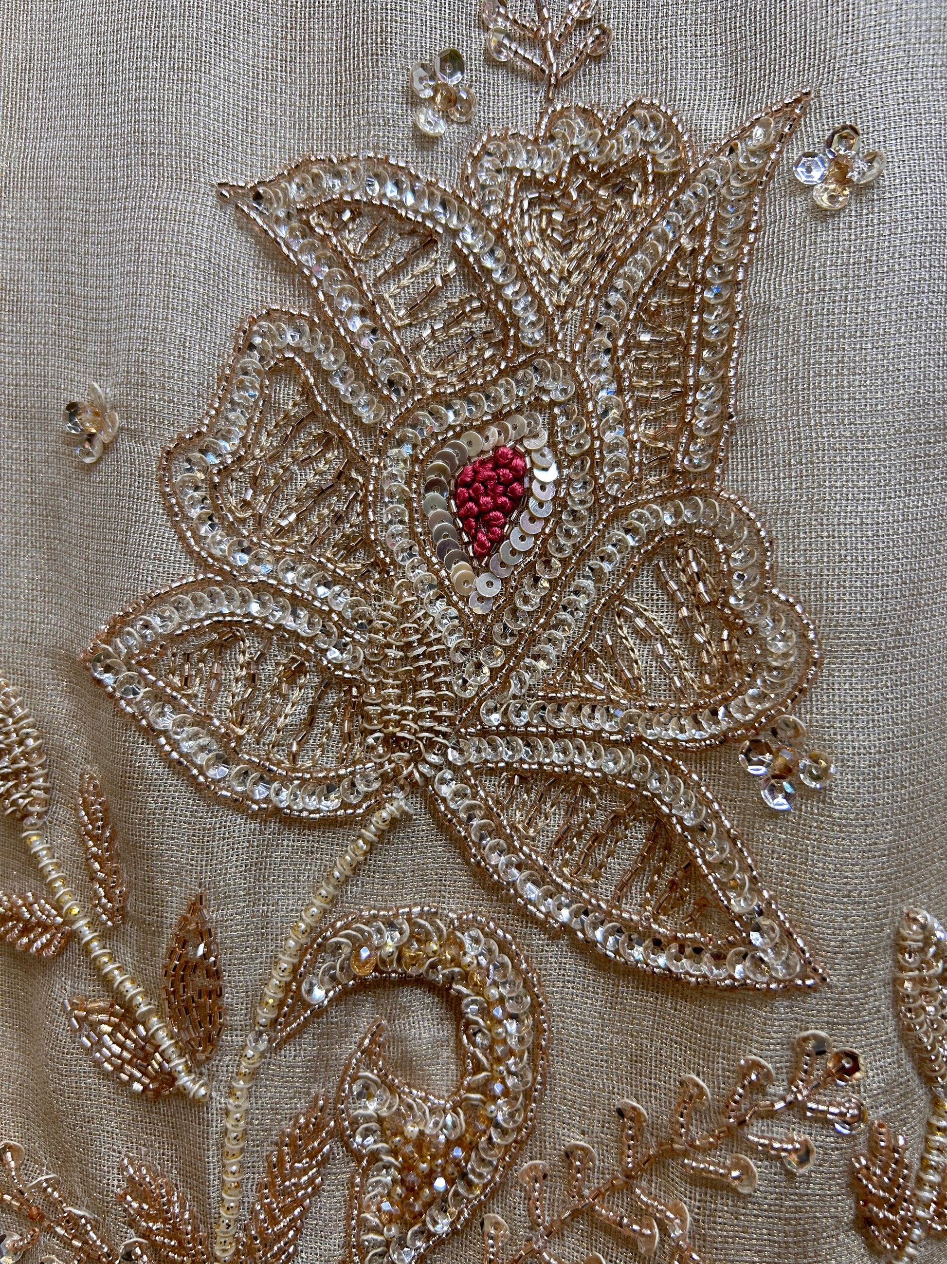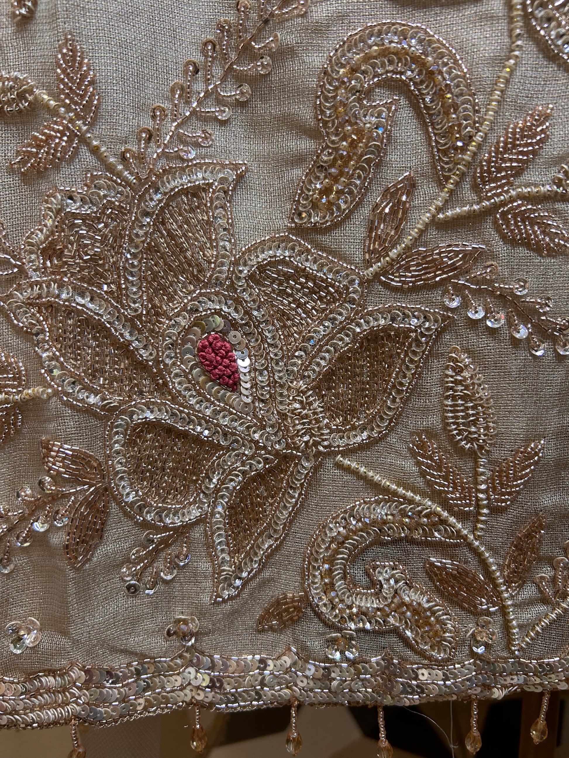 • Shimmer Organza Shirt with Hand Embroidery & Ghera Detailing – 2.5 meters