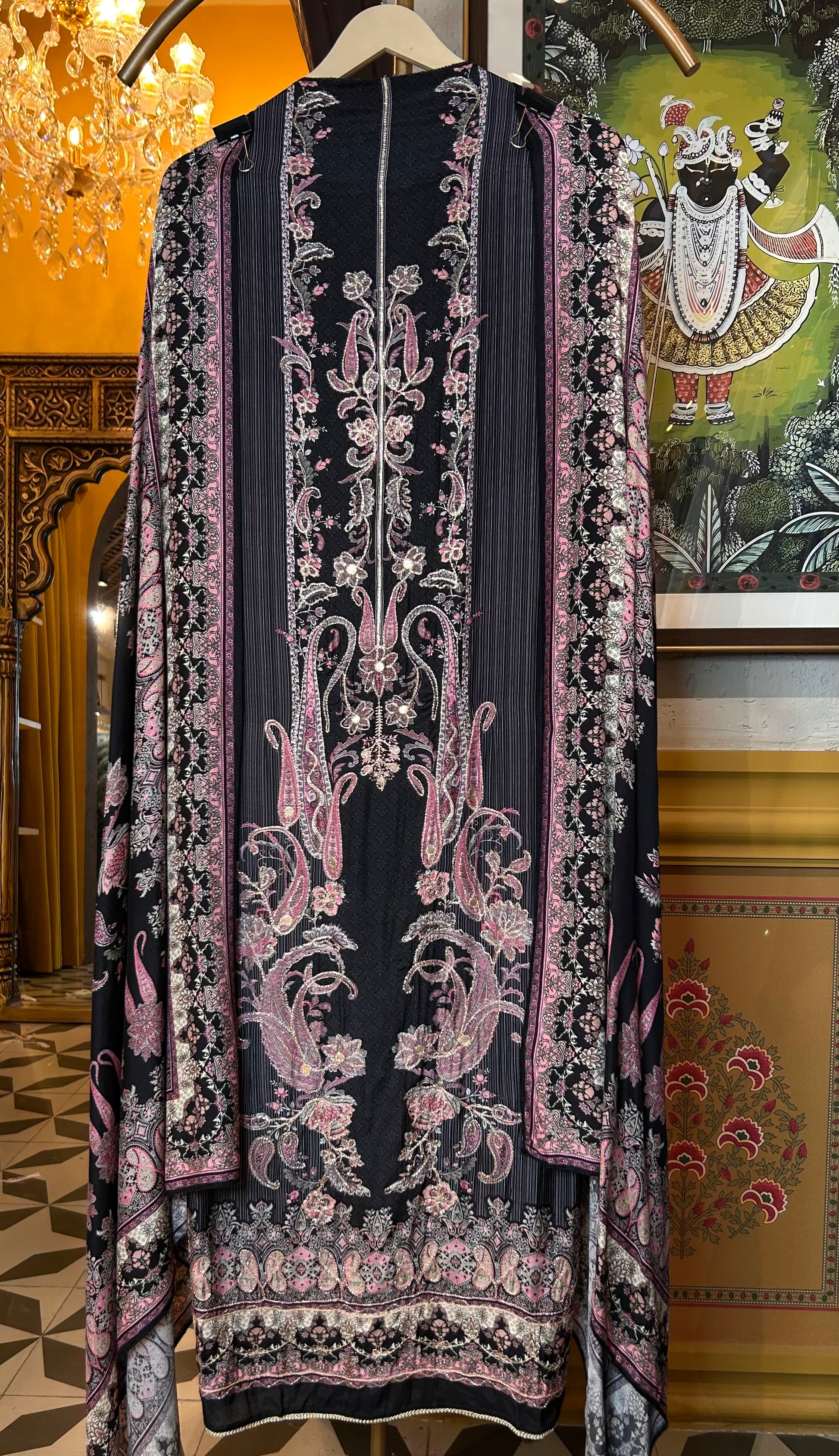 This product comes as an unstitched fabric set, allowing you to tailor it to your perfect fit.
