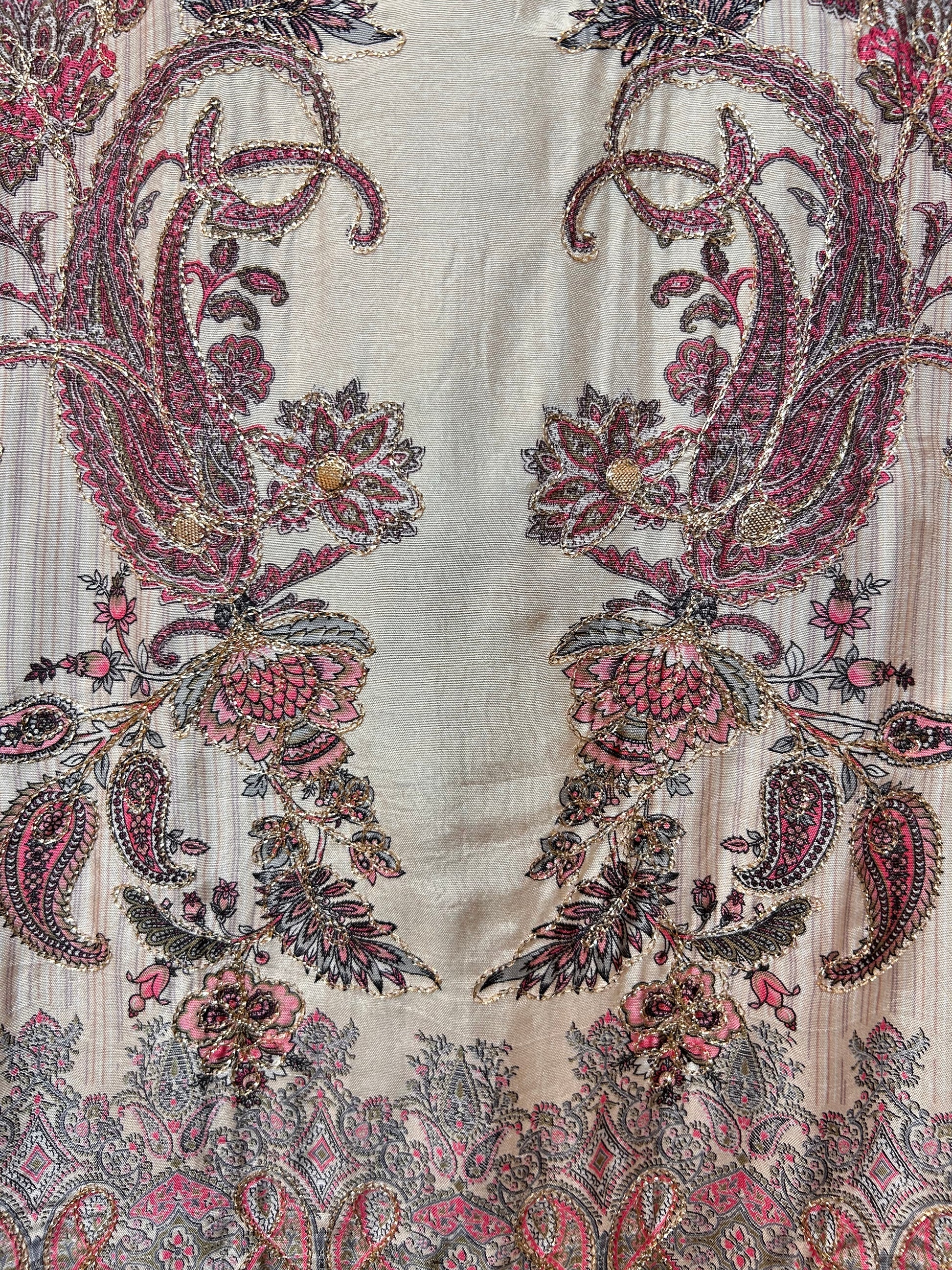 • Pure Muslin Digital Printed Shirt with Zari Work (2.5 mtr)