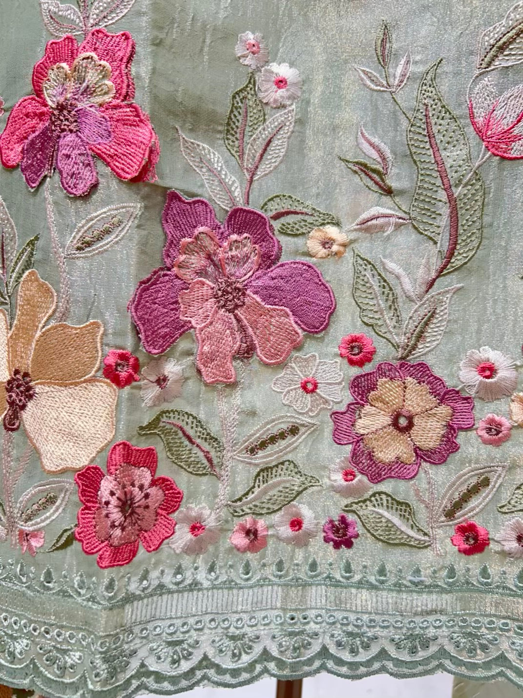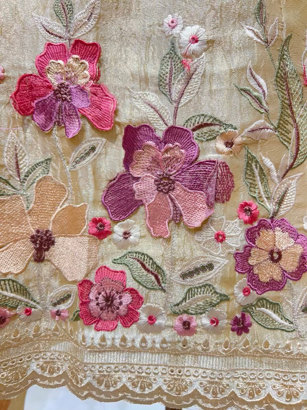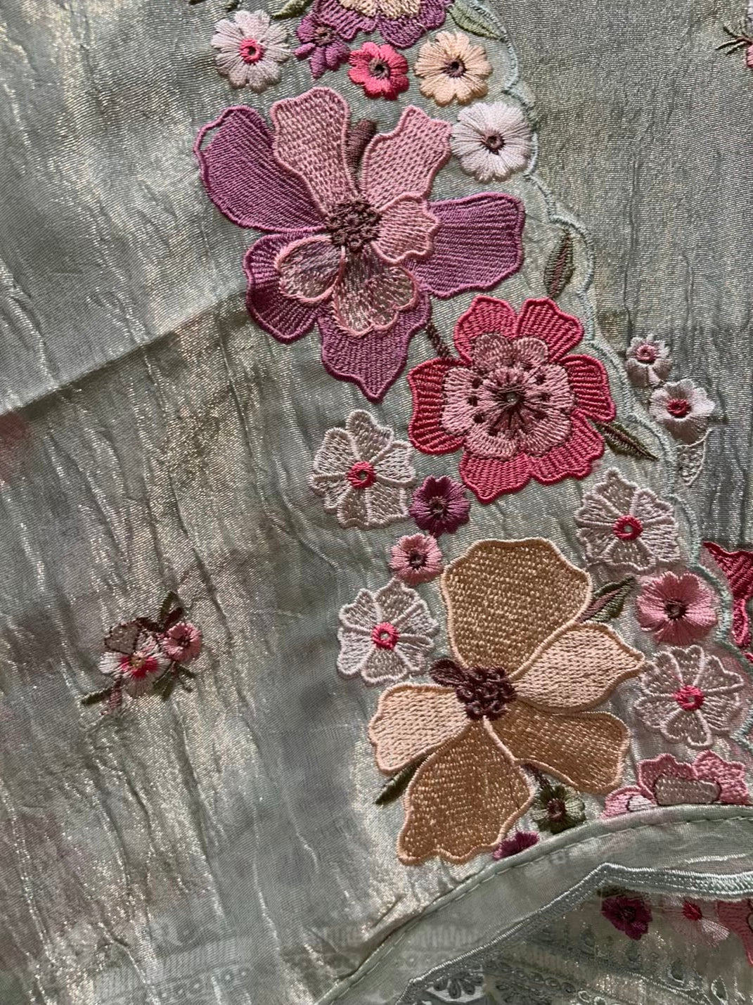 • Crush Tissue Dupatta with Thread Work (2.25 mtrs) – Soft, fluid, and beautifully coordinated.