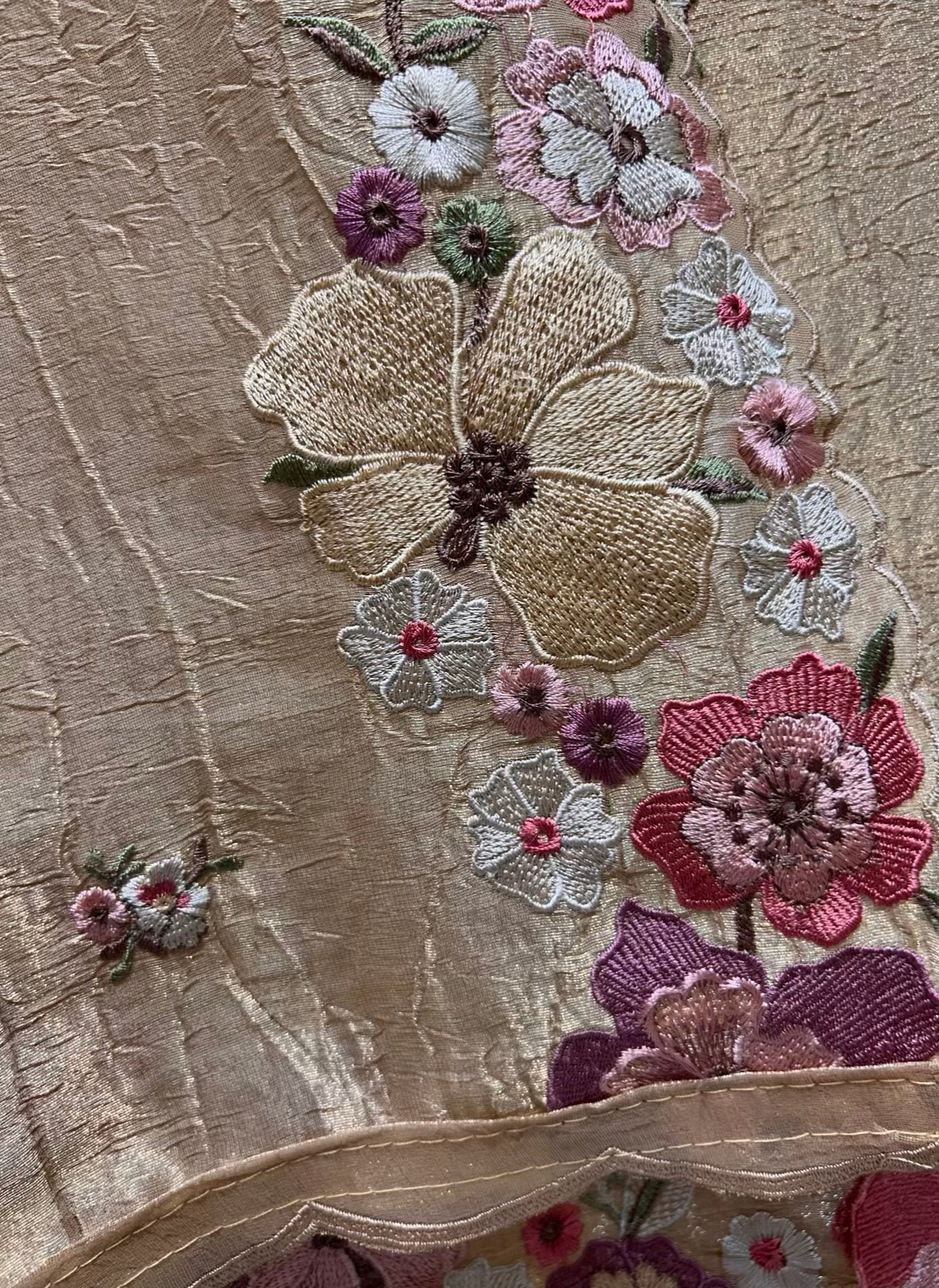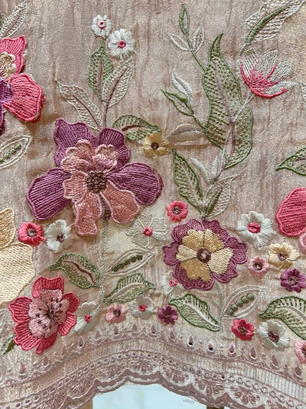 • Crush Tissue Suit with Thread Work (2.5 mtrs) – Textured fabric enriched with delicate detailing.