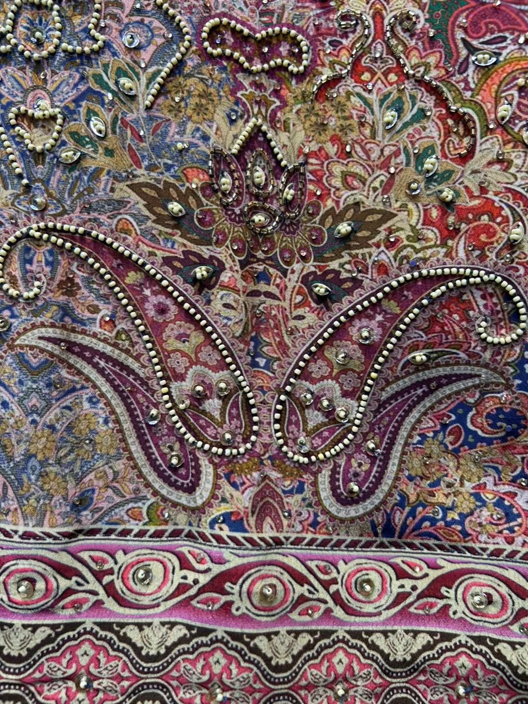 Soft, contemporary, and effortlessly elegant — the Nayesha Crepe Suit brings together the comfort of crepe with the charm of delicate craftsmanship. The digitally printed crepe suit is enhanced with refined handwork, adding a subtle sparkle that elevates its modern aesthetic. Paired with a flowing pure Chinon dupatta featuring coordinated digital prints and a smooth silk bottom, this ensemble blends ease, artistry, and timeless beauty.