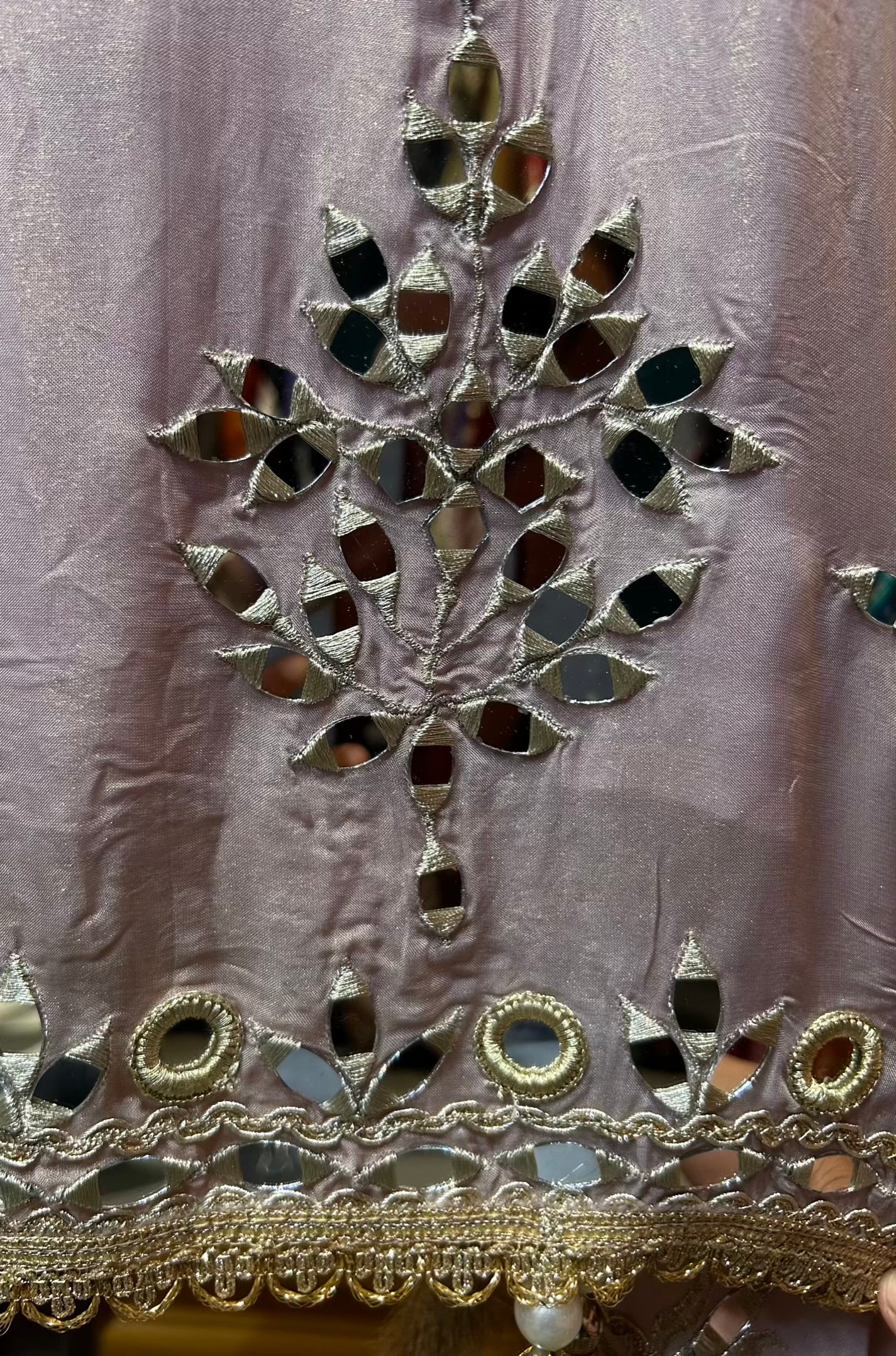• Organza Dupatta (2.25 mtrs) – Embellished with mirror work for a subtle, radiant allure.