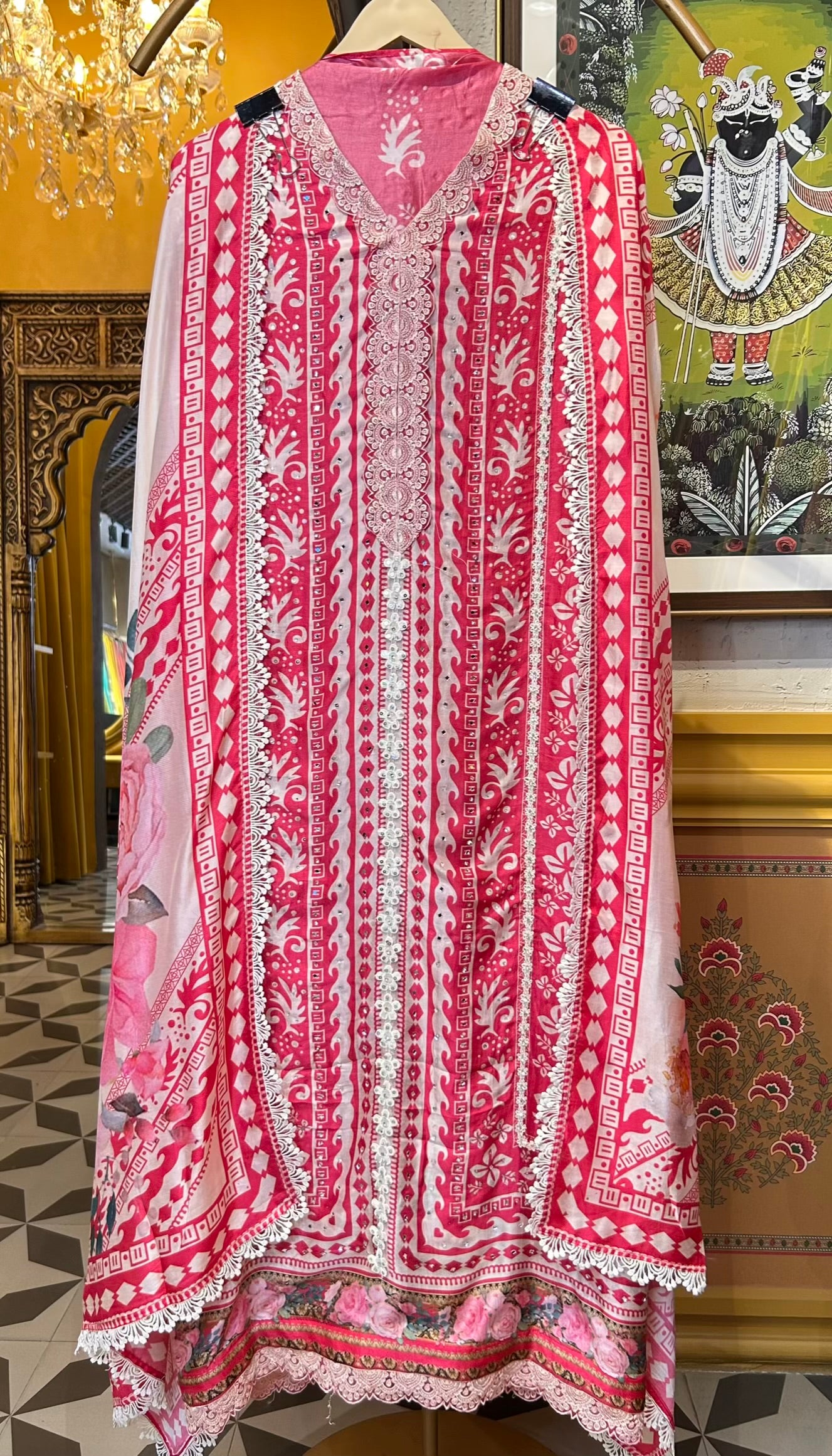 Vibrant artistry meets luxurious texture in this Digital Printed Silk Suit Set. The silk shirt, adorned with striking digital prints, brings modern elegance to traditional wear, while the flowing silk dupatta enhances the ensemble with effortless grace. Paired with a smooth silk bottom, this set is perfect for those who love sophistication with a contemporary twist.