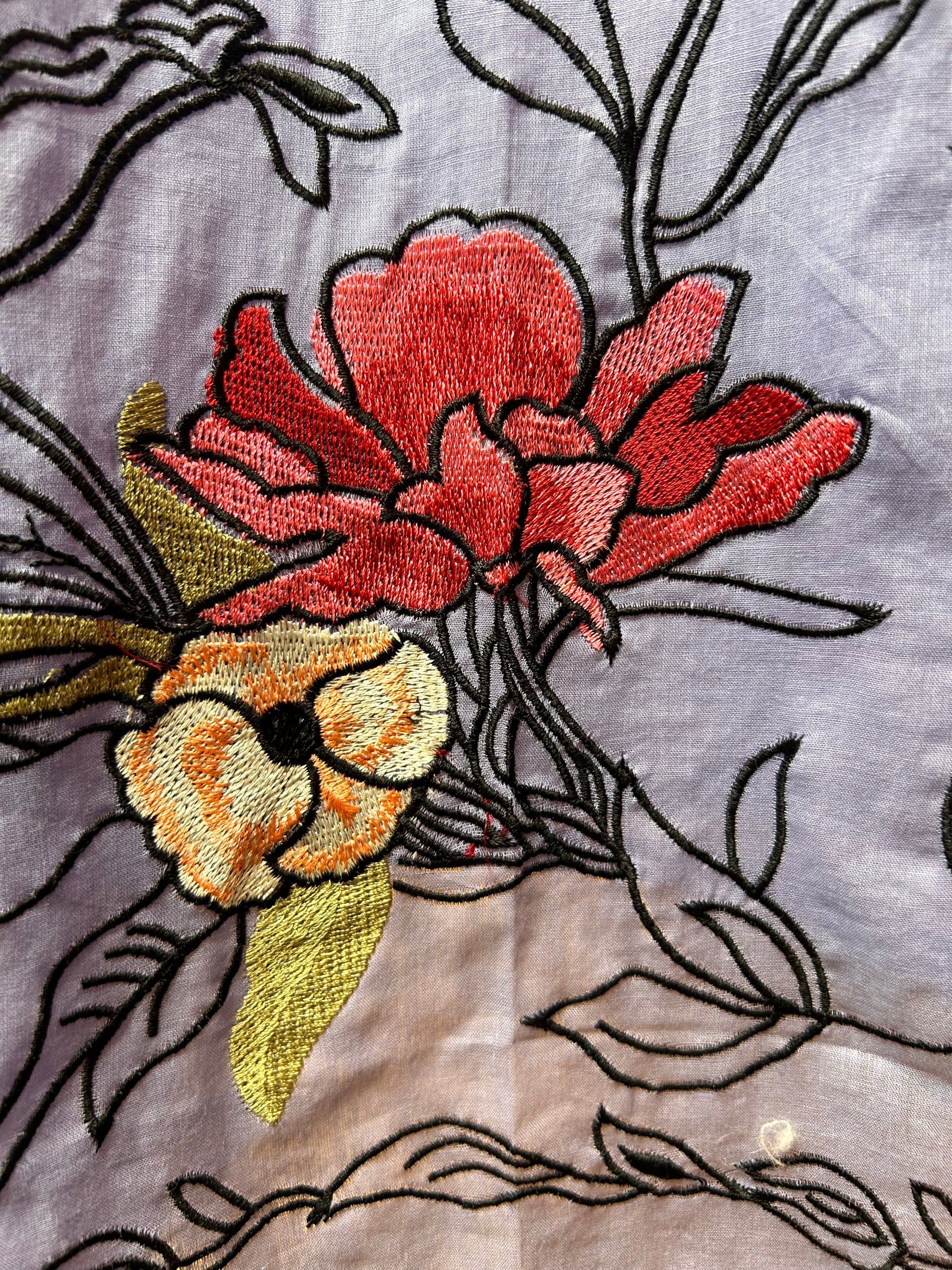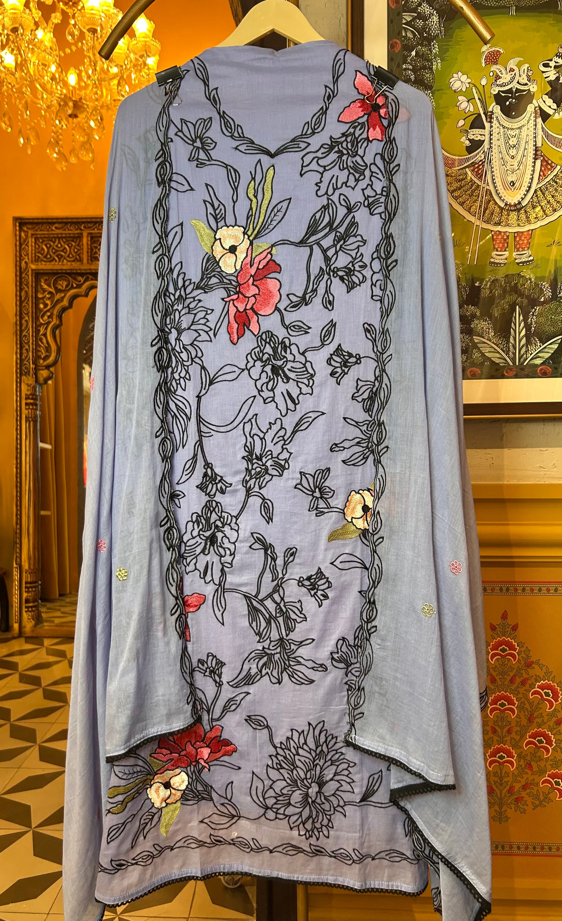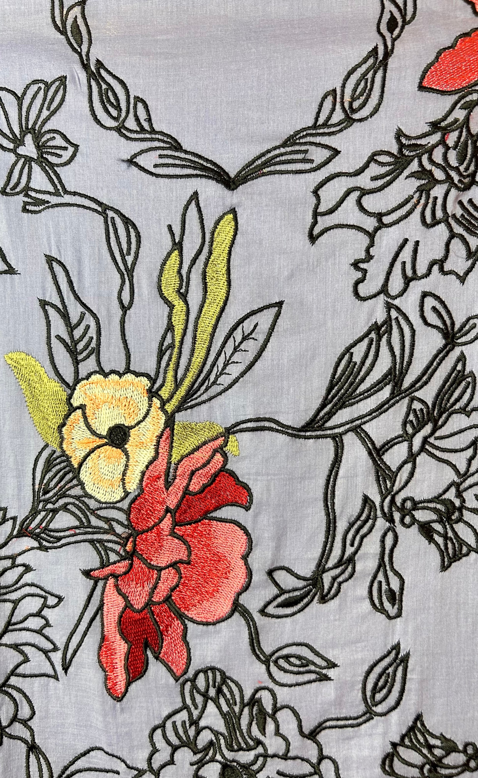 An airy canvas brought to life with intricate thread embroidery that flows across the fabric — whispering elegance with every stitch. -